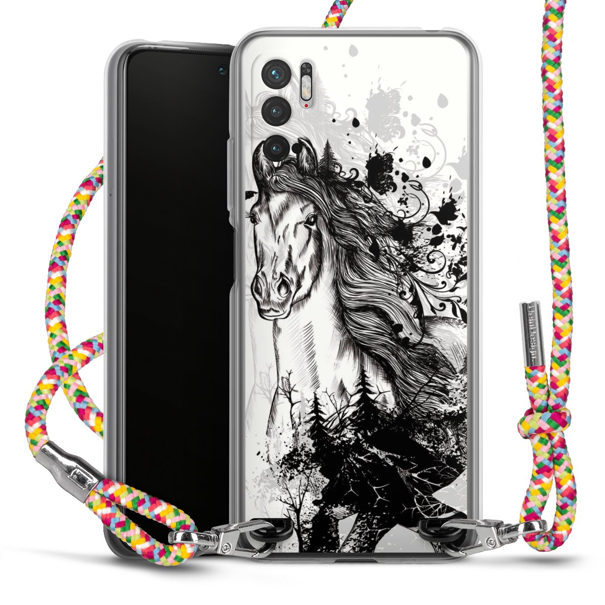 The flexible case is made from a highquality TPU material (thermoplastic Polyurethan). Thanks to its longlasting and break resistant characterisitcs, the case is flexible yet consistent in form and has a great grip and feel. The textile strap made from Polyester gives a chic yet casual accent allowing you to carry your phone like a bag or necklace - a practical gadget perfect for your next adventure. The textile strap is about 1.70 meters long and the length can easily be adjusted through the knots. Our Carry Case is available in Colourful, Mint-Camouflage, Very-Berry, Sahara-Sand and Sparkling-Neon. The ends of the textile strap are covered with metallic end caps to protect them against fraying.