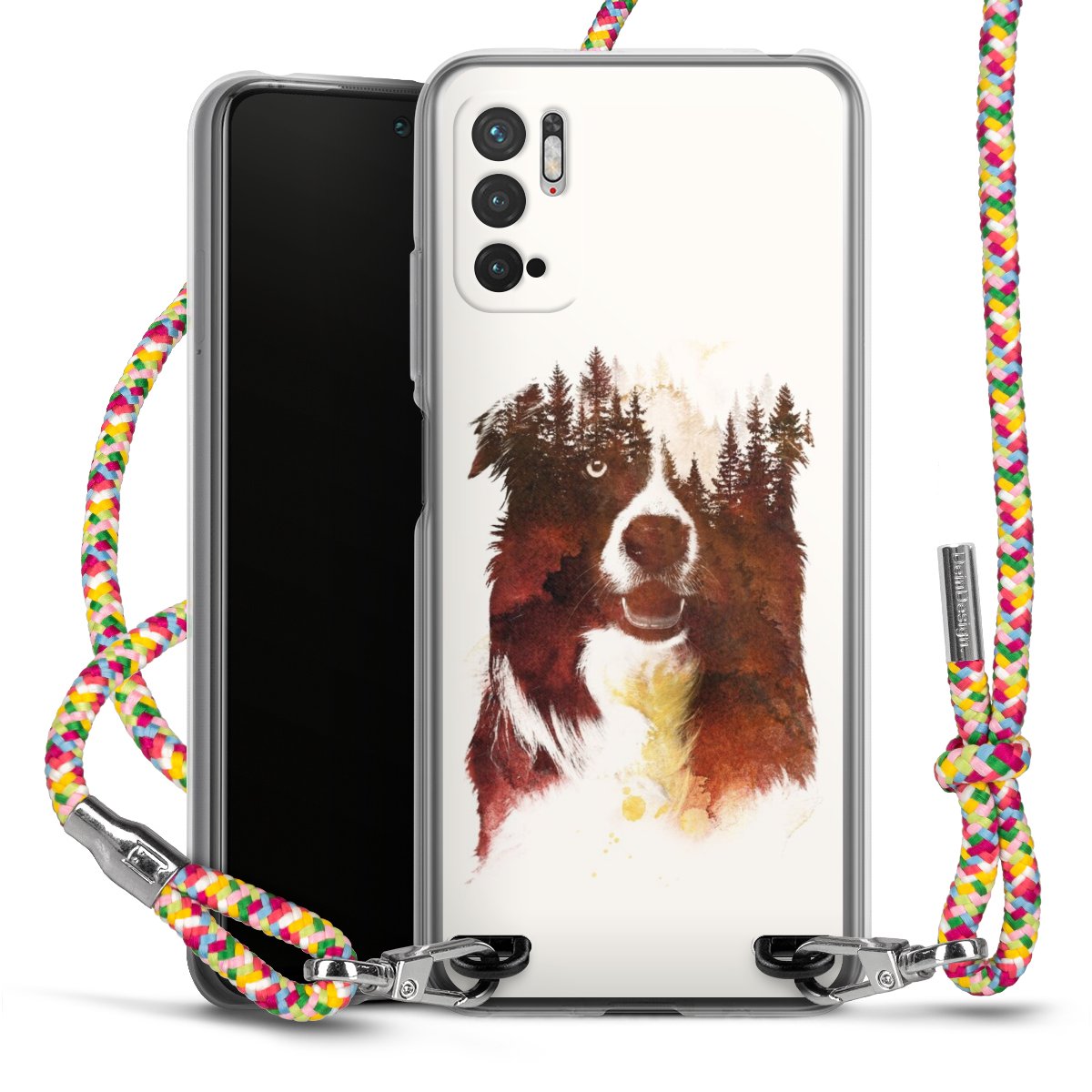 The flexible case is made from a highquality TPU material (thermoplastic Polyurethan). Thanks to its longlasting and break resistant characterisitcs, the case is flexible yet consistent in form and has a great grip and feel. The textile strap made from Polyester gives a chic yet casual accent allowing you to carry your phone like a bag or necklace - a practical gadget perfect for your next adventure. The textile strap is about 1.70 meters long and the length can easily be adjusted through the knots. Our Carry Case is available in Colourful, Mint-Camouflage, Very-Berry, Sahara-Sand and Sparkling-Neon. The ends of the textile strap are covered with metallic end caps to protect them against fraying.