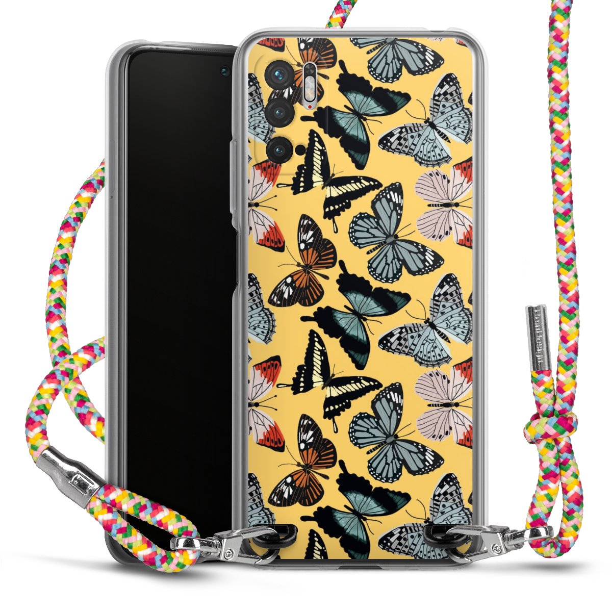 The flexible case is made from a highquality TPU material (thermoplastic Polyurethan). Thanks to its longlasting and break resistant characterisitcs, the case is flexible yet consistent in form and has a great grip and feel. The textile strap made from Polyester gives a chic yet casual accent allowing you to carry your phone like a bag or necklace - a practical gadget perfect for your next adventure. The textile strap is about 1.70 meters long and the length can easily be adjusted through the knots. Our Carry Case is available in Colourful, Mint-Camouflage, Very-Berry, Sahara-Sand and Sparkling-Neon. The ends of the textile strap are covered with metallic end caps to protect them against fraying.