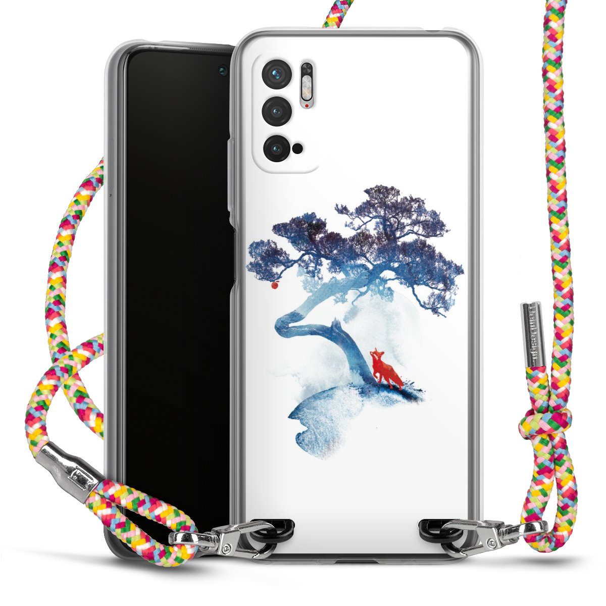 The flexible case is made from a highquality TPU material (thermoplastic Polyurethan). Thanks to its longlasting and break resistant characterisitcs, the case is flexible yet consistent in form and has a great grip and feel. The textile strap made from Polyester gives a chic yet casual accent allowing you to carry your phone like a bag or necklace - a practical gadget perfect for your next adventure. The textile strap is about 1.70 meters long and the length can easily be adjusted through the knots. Our Carry Case is available in Colourful, Mint-Camouflage, Very-Berry, Sahara-Sand and Sparkling-Neon. The ends of the textile strap are covered with metallic end caps to protect them against fraying.