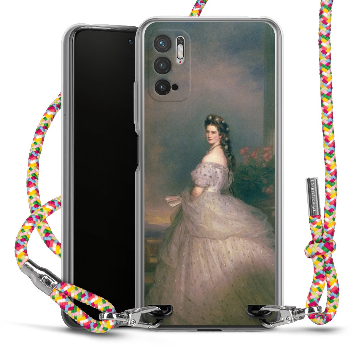 The flexible case is made from a highquality TPU material (thermoplastic Polyurethan). Thanks to its longlasting and break resistant characterisitcs, the case is flexible yet consistent in form and has a great grip and feel. The textile strap made from Polyester gives a chic yet casual accent allowing you to carry your phone like a bag or necklace - a practical gadget perfect for your next adventure. The textile strap is about 1.70 meters long and the length can easily be adjusted through the knots. Our Carry Case is available in Colourful, Mint-Camouflage, Very-Berry, Sahara-Sand and Sparkling-Neon. The ends of the textile strap are covered with metallic end caps to protect them against fraying.