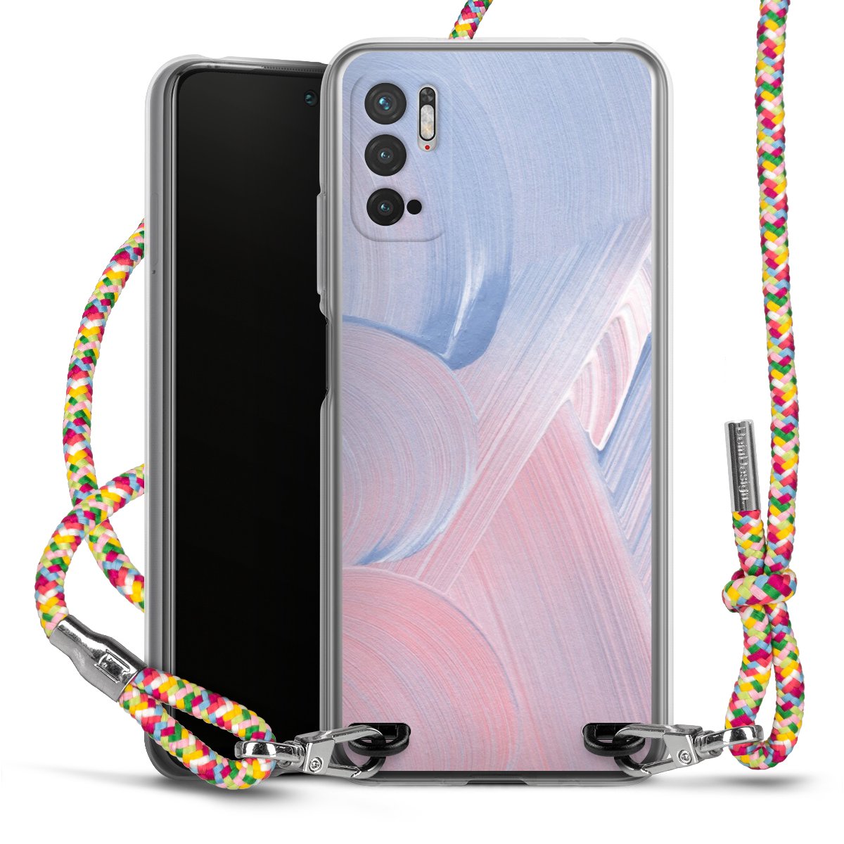 The flexible case is made from a highquality TPU material (thermoplastic Polyurethan). Thanks to its longlasting and break resistant characterisitcs, the case is flexible yet consistent in form and has a great grip and feel. The textile strap made from Polyester gives a chic yet casual accent allowing you to carry your phone like a bag or necklace - a practical gadget perfect for your next adventure. The textile strap is about 1.70 meters long and the length can easily be adjusted through the knots. Our Carry Case is available in Colourful, Mint-Camouflage, Very-Berry, Sahara-Sand and Sparkling-Neon. The ends of the textile strap are covered with metallic end caps to protect them against fraying.