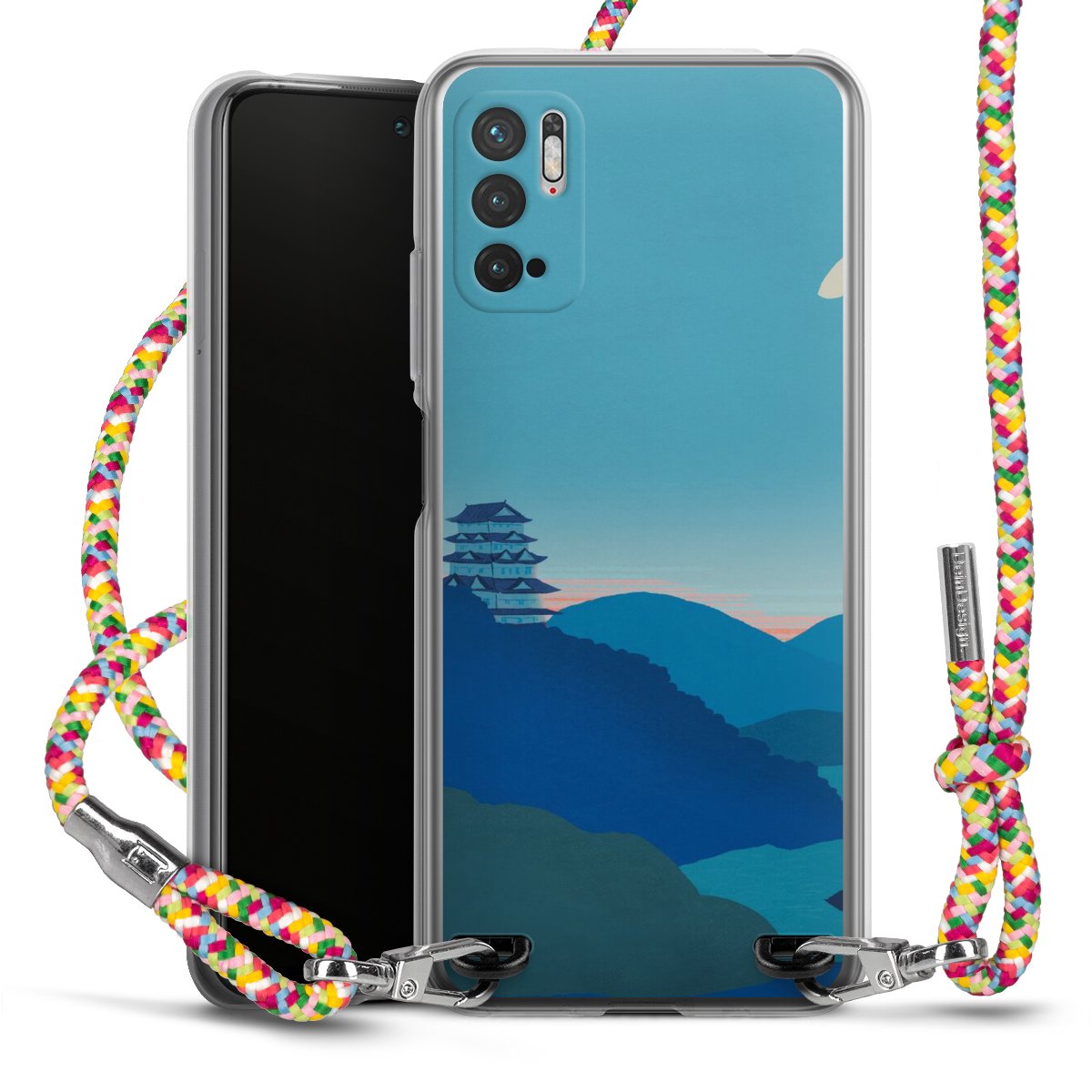 The flexible case is made from a highquality TPU material (thermoplastic Polyurethan). Thanks to its longlasting and break resistant characterisitcs, the case is flexible yet consistent in form and has a great grip and feel. The textile strap made from Polyester gives a chic yet casual accent allowing you to carry your phone like a bag or necklace - a practical gadget perfect for your next adventure. The textile strap is about 1.70 meters long and the length can easily be adjusted through the knots. Our Carry Case is available in Colourful, Mint-Camouflage, Very-Berry, Sahara-Sand and Sparkling-Neon. The ends of the textile strap are covered with metallic end caps to protect them against fraying.