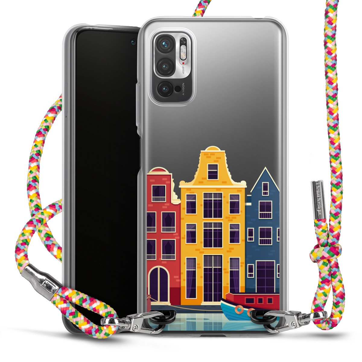 The flexible case is made from a highquality TPU material (thermoplastic Polyurethan). Thanks to its longlasting and break resistant characterisitcs, the case is flexible yet consistent in form and has a great grip and feel. The textile strap made from Polyester gives a chic yet casual accent allowing you to carry your phone like a bag or necklace - a practical gadget perfect for your next adventure. The textile strap is about 1.70 meters long and the length can easily be adjusted through the knots. Our Carry Case is available in Colourful, Mint-Camouflage, Very-Berry, Sahara-Sand and Sparkling-Neon. The ends of the textile strap are covered with metallic end caps to protect them against fraying.
