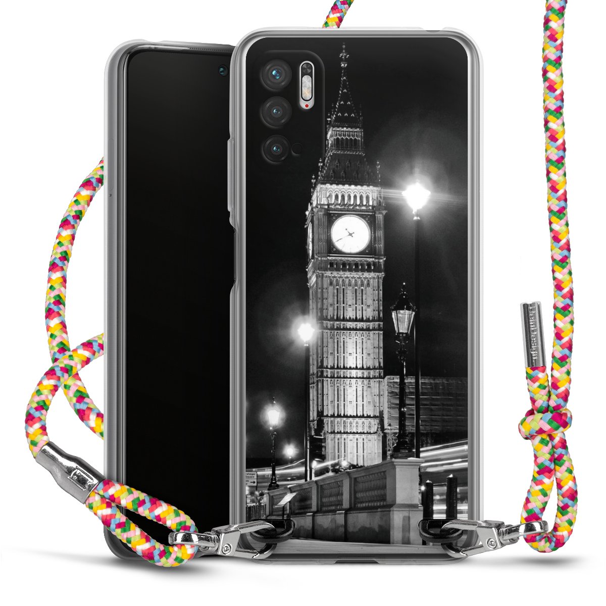 The flexible case is made from a highquality TPU material (thermoplastic Polyurethan). Thanks to its longlasting and break resistant characterisitcs, the case is flexible yet consistent in form and has a great grip and feel. The textile strap made from Polyester gives a chic yet casual accent allowing you to carry your phone like a bag or necklace - a practical gadget perfect for your next adventure. The textile strap is about 1.70 meters long and the length can easily be adjusted through the knots. Our Carry Case is available in Colourful, Mint-Camouflage, Very-Berry, Sahara-Sand and Sparkling-Neon. The ends of the textile strap are covered with metallic end caps to protect them against fraying.