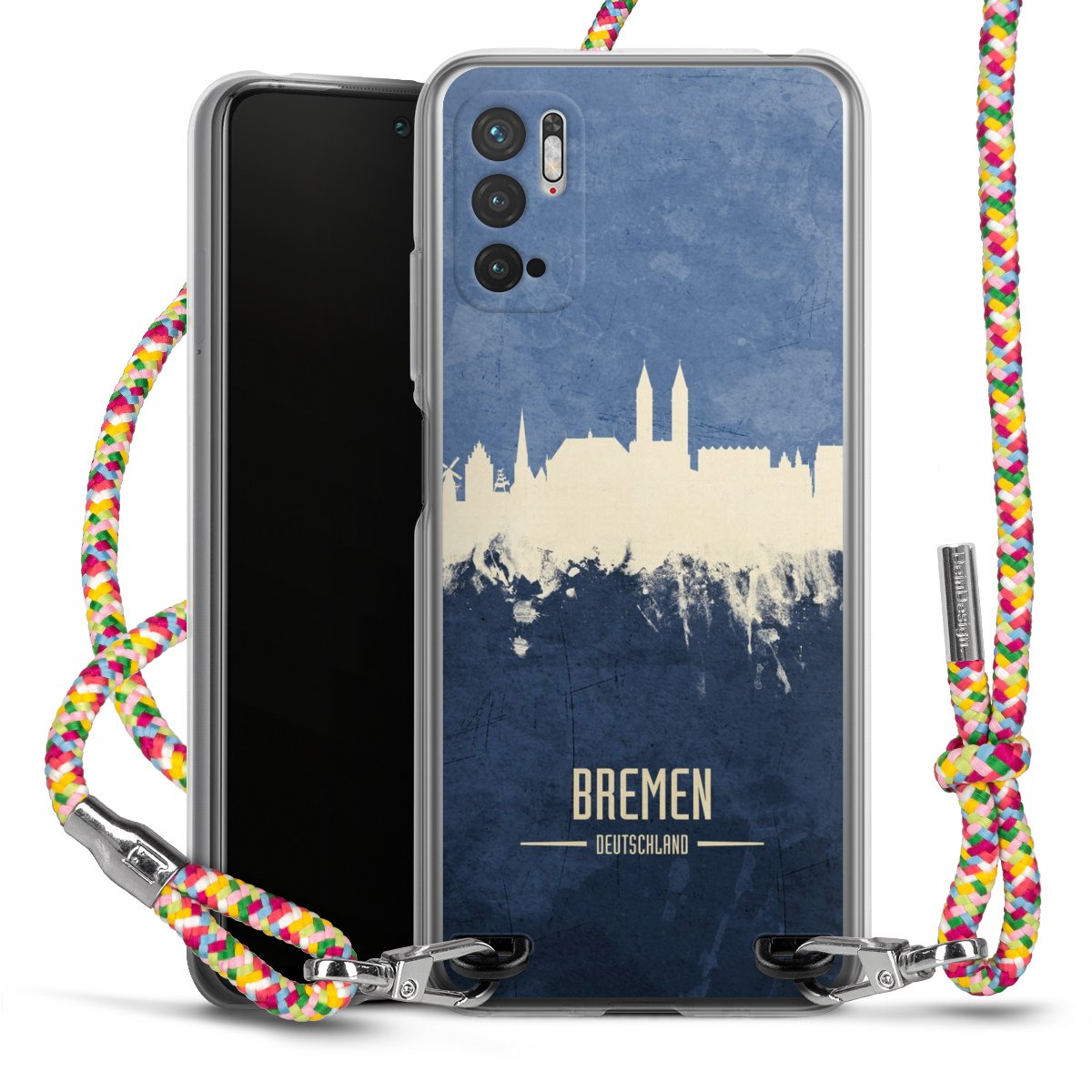 The flexible case is made from a highquality TPU material (thermoplastic Polyurethan). Thanks to its longlasting and break resistant characterisitcs, the case is flexible yet consistent in form and has a great grip and feel. The textile strap made from Polyester gives a chic yet casual accent allowing you to carry your phone like a bag or necklace - a practical gadget perfect for your next adventure. The textile strap is about 1.70 meters long and the length can easily be adjusted through the knots. Our Carry Case is available in Colourful, Mint-Camouflage, Very-Berry, Sahara-Sand and Sparkling-Neon. The ends of the textile strap are covered with metallic end caps to protect them against fraying.