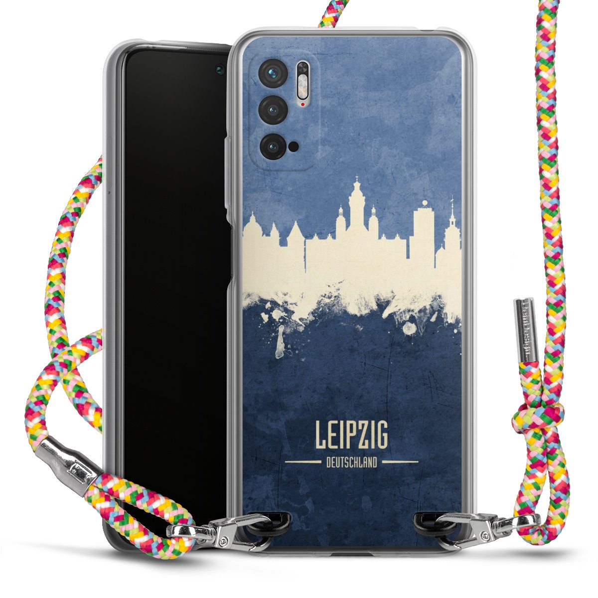 The flexible case is made from a highquality TPU material (thermoplastic Polyurethan). Thanks to its longlasting and break resistant characterisitcs, the case is flexible yet consistent in form and has a great grip and feel. The textile strap made from Polyester gives a chic yet casual accent allowing you to carry your phone like a bag or necklace - a practical gadget perfect for your next adventure. The textile strap is about 1.70 meters long and the length can easily be adjusted through the knots. Our Carry Case is available in Colourful, Mint-Camouflage, Very-Berry, Sahara-Sand and Sparkling-Neon. The ends of the textile strap are covered with metallic end caps to protect them against fraying.