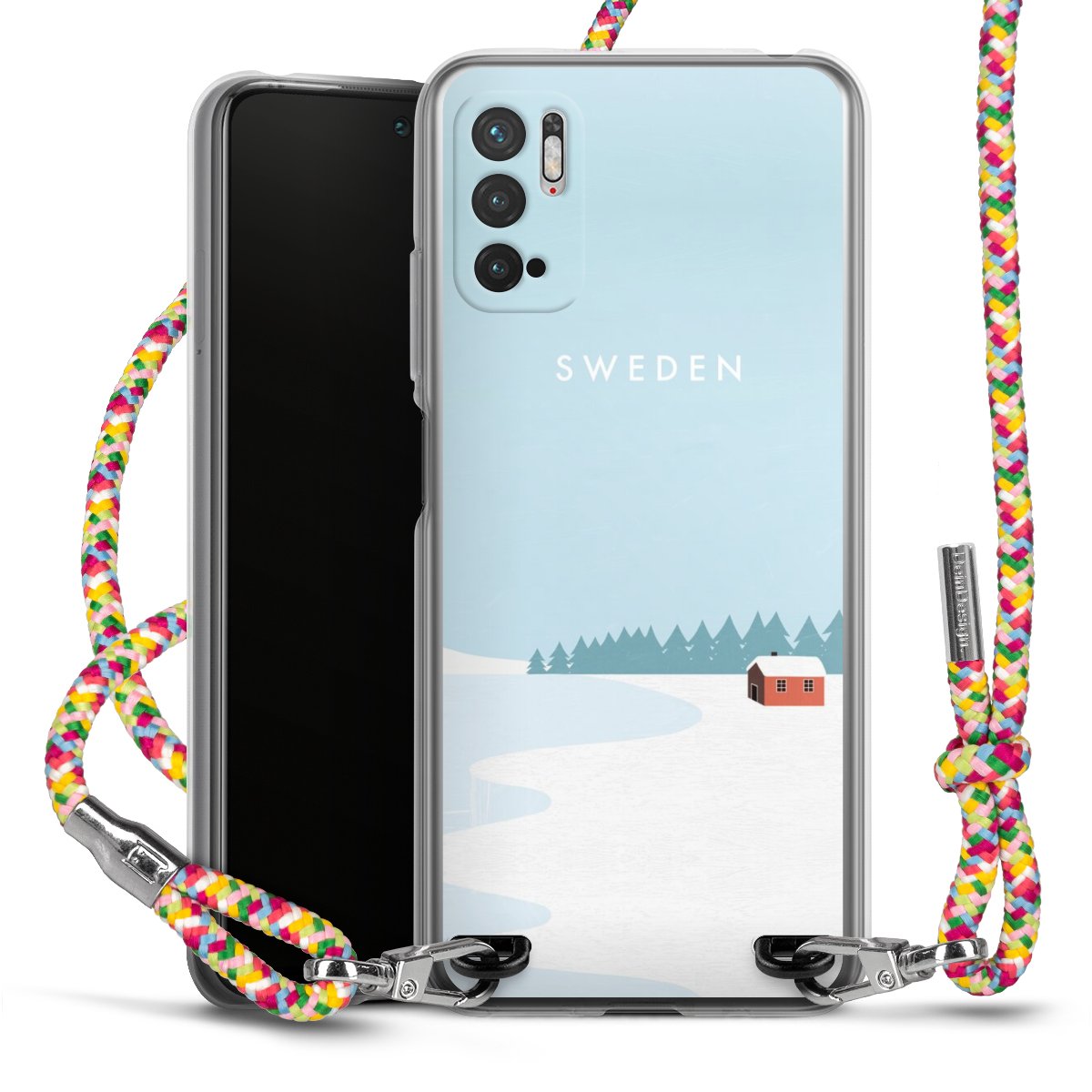 The flexible case is made from a highquality TPU material (thermoplastic Polyurethan). Thanks to its longlasting and break resistant characterisitcs, the case is flexible yet consistent in form and has a great grip and feel. The textile strap made from Polyester gives a chic yet casual accent allowing you to carry your phone like a bag or necklace - a practical gadget perfect for your next adventure. The textile strap is about 1.70 meters long and the length can easily be adjusted through the knots. Our Carry Case is available in Colourful, Mint-Camouflage, Very-Berry, Sahara-Sand and Sparkling-Neon. The ends of the textile strap are covered with metallic end caps to protect them against fraying.