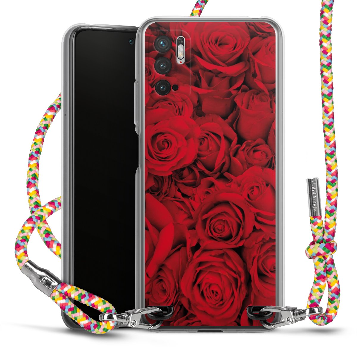 The flexible case is made from a highquality TPU material (thermoplastic Polyurethan). Thanks to its longlasting and break resistant characterisitcs, the case is flexible yet consistent in form and has a great grip and feel. The textile strap made from Polyester gives a chic yet casual accent allowing you to carry your phone like a bag or necklace - a practical gadget perfect for your next adventure. The textile strap is about 1.70 meters long and the length can easily be adjusted through the knots. Our Carry Case is available in Colourful, Mint-Camouflage, Very-Berry, Sahara-Sand and Sparkling-Neon. The ends of the textile strap are covered with metallic end caps to protect them against fraying.