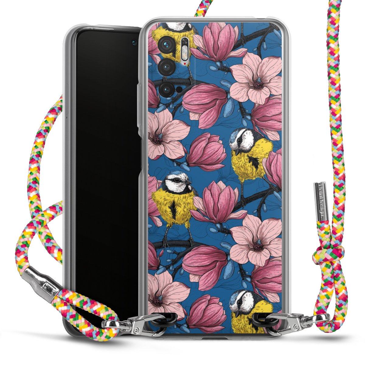 The flexible case is made from a highquality TPU material (thermoplastic Polyurethan). Thanks to its longlasting and break resistant characterisitcs, the case is flexible yet consistent in form and has a great grip and feel. The textile strap made from Polyester gives a chic yet casual accent allowing you to carry your phone like a bag or necklace - a practical gadget perfect for your next adventure. The textile strap is about 1.70 meters long and the length can easily be adjusted through the knots. Our Carry Case is available in Colourful, Mint-Camouflage, Very-Berry, Sahara-Sand and Sparkling-Neon. The ends of the textile strap are covered with metallic end caps to protect them against fraying.