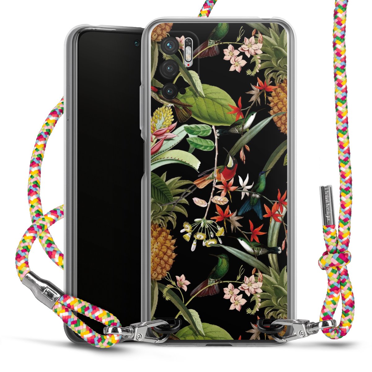 The flexible case is made from a highquality TPU material (thermoplastic Polyurethan). Thanks to its longlasting and break resistant characterisitcs, the case is flexible yet consistent in form and has a great grip and feel. The textile strap made from Polyester gives a chic yet casual accent allowing you to carry your phone like a bag or necklace - a practical gadget perfect for your next adventure. The textile strap is about 1.70 meters long and the length can easily be adjusted through the knots. Our Carry Case is available in Colourful, Mint-Camouflage, Very-Berry, Sahara-Sand and Sparkling-Neon. The ends of the textile strap are covered with metallic end caps to protect them against fraying.