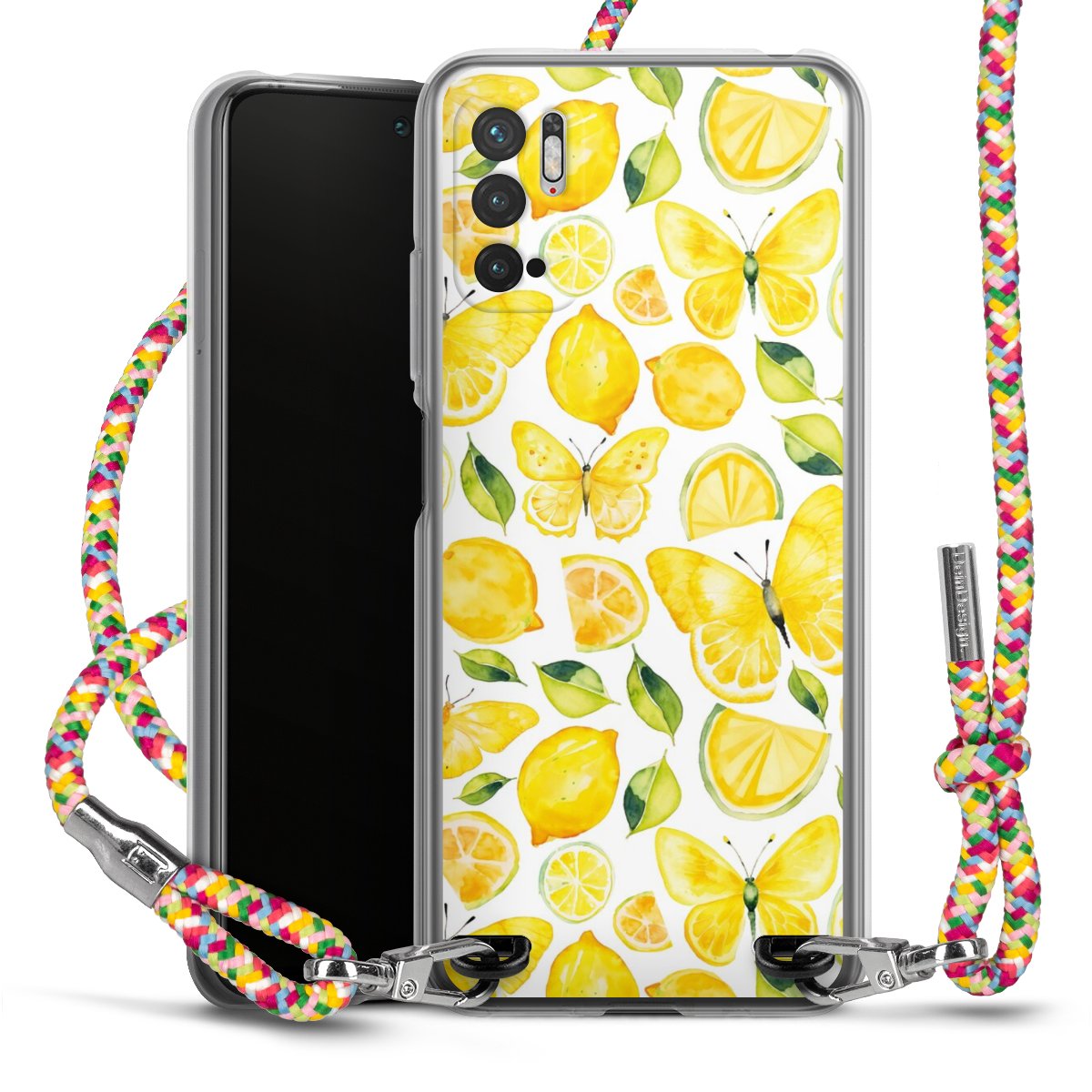 The flexible case is made from a highquality TPU material (thermoplastic Polyurethan). Thanks to its longlasting and break resistant characterisitcs, the case is flexible yet consistent in form and has a great grip and feel. The textile strap made from Polyester gives a chic yet casual accent allowing you to carry your phone like a bag or necklace - a practical gadget perfect for your next adventure. The textile strap is about 1.70 meters long and the length can easily be adjusted through the knots. Our Carry Case is available in Colourful, Mint-Camouflage, Very-Berry, Sahara-Sand and Sparkling-Neon. The ends of the textile strap are covered with metallic end caps to protect them against fraying.