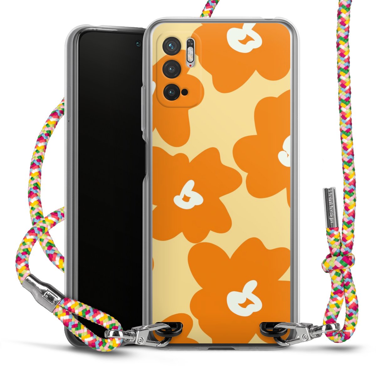 The flexible case is made from a highquality TPU material (thermoplastic Polyurethan). Thanks to its longlasting and break resistant characterisitcs, the case is flexible yet consistent in form and has a great grip and feel. The textile strap made from Polyester gives a chic yet casual accent allowing you to carry your phone like a bag or necklace - a practical gadget perfect for your next adventure. The textile strap is about 1.70 meters long and the length can easily be adjusted through the knots. Our Carry Case is available in Colourful, Mint-Camouflage, Very-Berry, Sahara-Sand and Sparkling-Neon. The ends of the textile strap are covered with metallic end caps to protect them against fraying.