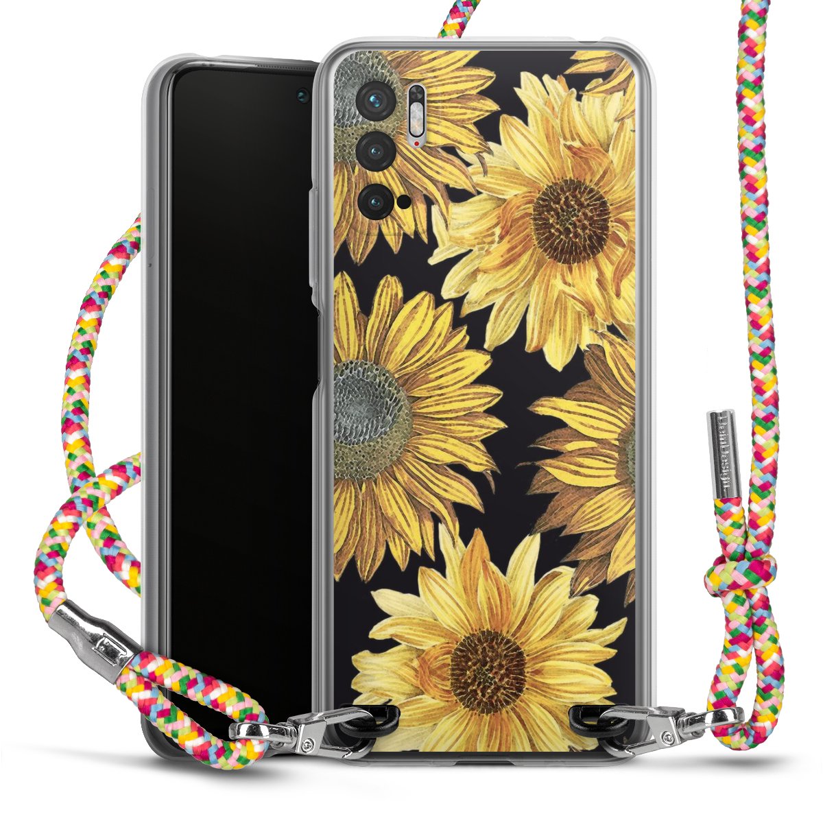 The flexible case is made from a highquality TPU material (thermoplastic Polyurethan). Thanks to its longlasting and break resistant characterisitcs, the case is flexible yet consistent in form and has a great grip and feel. The textile strap made from Polyester gives a chic yet casual accent allowing you to carry your phone like a bag or necklace - a practical gadget perfect for your next adventure. The textile strap is about 1.70 meters long and the length can easily be adjusted through the knots. Our Carry Case is available in Colourful, Mint-Camouflage, Very-Berry, Sahara-Sand and Sparkling-Neon. The ends of the textile strap are covered with metallic end caps to protect them against fraying.