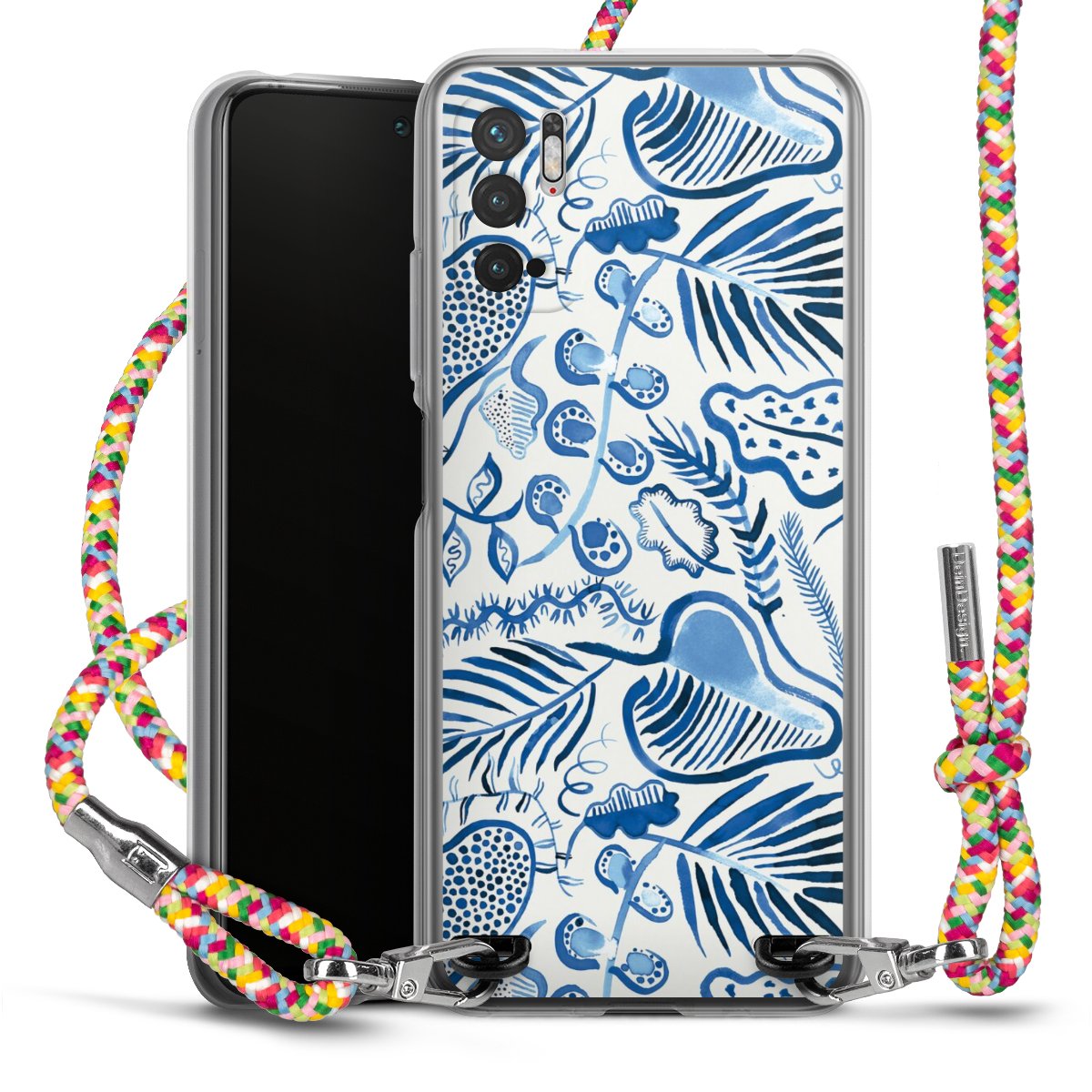 The flexible case is made from a highquality TPU material (thermoplastic Polyurethan). Thanks to its longlasting and break resistant characterisitcs, the case is flexible yet consistent in form and has a great grip and feel. The textile strap made from Polyester gives a chic yet casual accent allowing you to carry your phone like a bag or necklace - a practical gadget perfect for your next adventure. The textile strap is about 1.70 meters long and the length can easily be adjusted through the knots. Our Carry Case is available in Colourful, Mint-Camouflage, Very-Berry, Sahara-Sand and Sparkling-Neon. The ends of the textile strap are covered with metallic end caps to protect them against fraying.