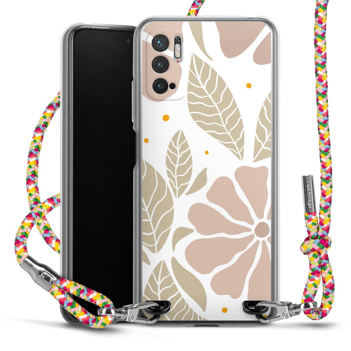 The flexible case is made from a highquality TPU material (thermoplastic Polyurethan). Thanks to its longlasting and break resistant characterisitcs, the case is flexible yet consistent in form and has a great grip and feel. The textile strap made from Polyester gives a chic yet casual accent allowing you to carry your phone like a bag or necklace - a practical gadget perfect for your next adventure. The textile strap is about 1.70 meters long and the length can easily be adjusted through the knots. Our Carry Case is available in Colourful, Mint-Camouflage, Very-Berry, Sahara-Sand and Sparkling-Neon. The ends of the textile strap are covered with metallic end caps to protect them against fraying.