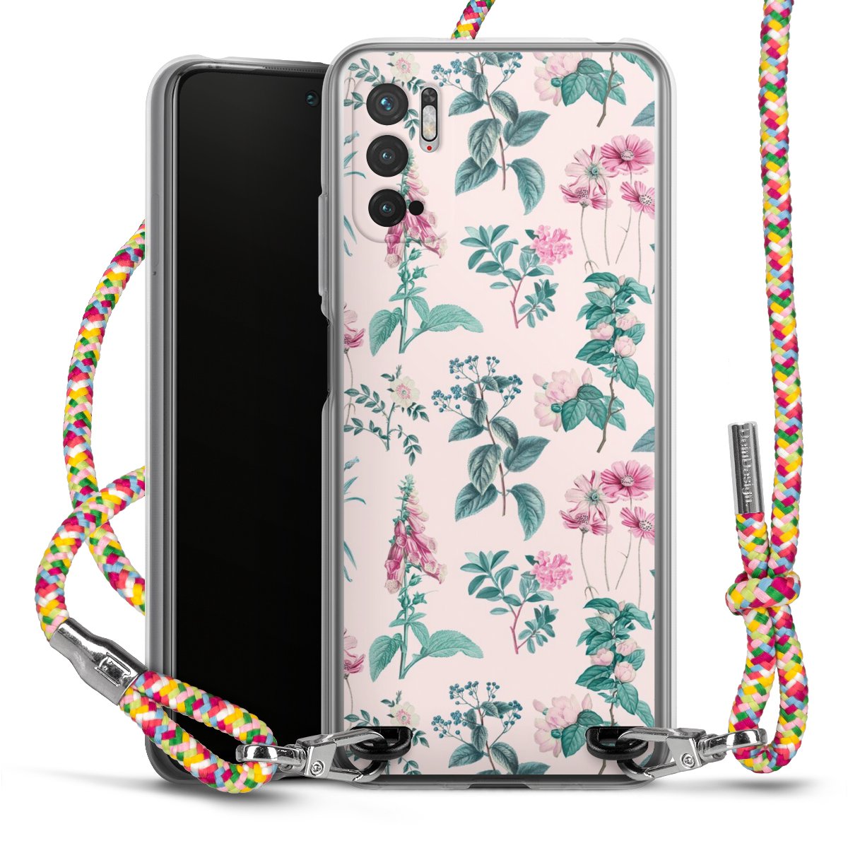 The flexible case is made from a highquality TPU material (thermoplastic Polyurethan). Thanks to its longlasting and break resistant characterisitcs, the case is flexible yet consistent in form and has a great grip and feel. The textile strap made from Polyester gives a chic yet casual accent allowing you to carry your phone like a bag or necklace - a practical gadget perfect for your next adventure. The textile strap is about 1.70 meters long and the length can easily be adjusted through the knots. Our Carry Case is available in Colourful, Mint-Camouflage, Very-Berry, Sahara-Sand and Sparkling-Neon. The ends of the textile strap are covered with metallic end caps to protect them against fraying.