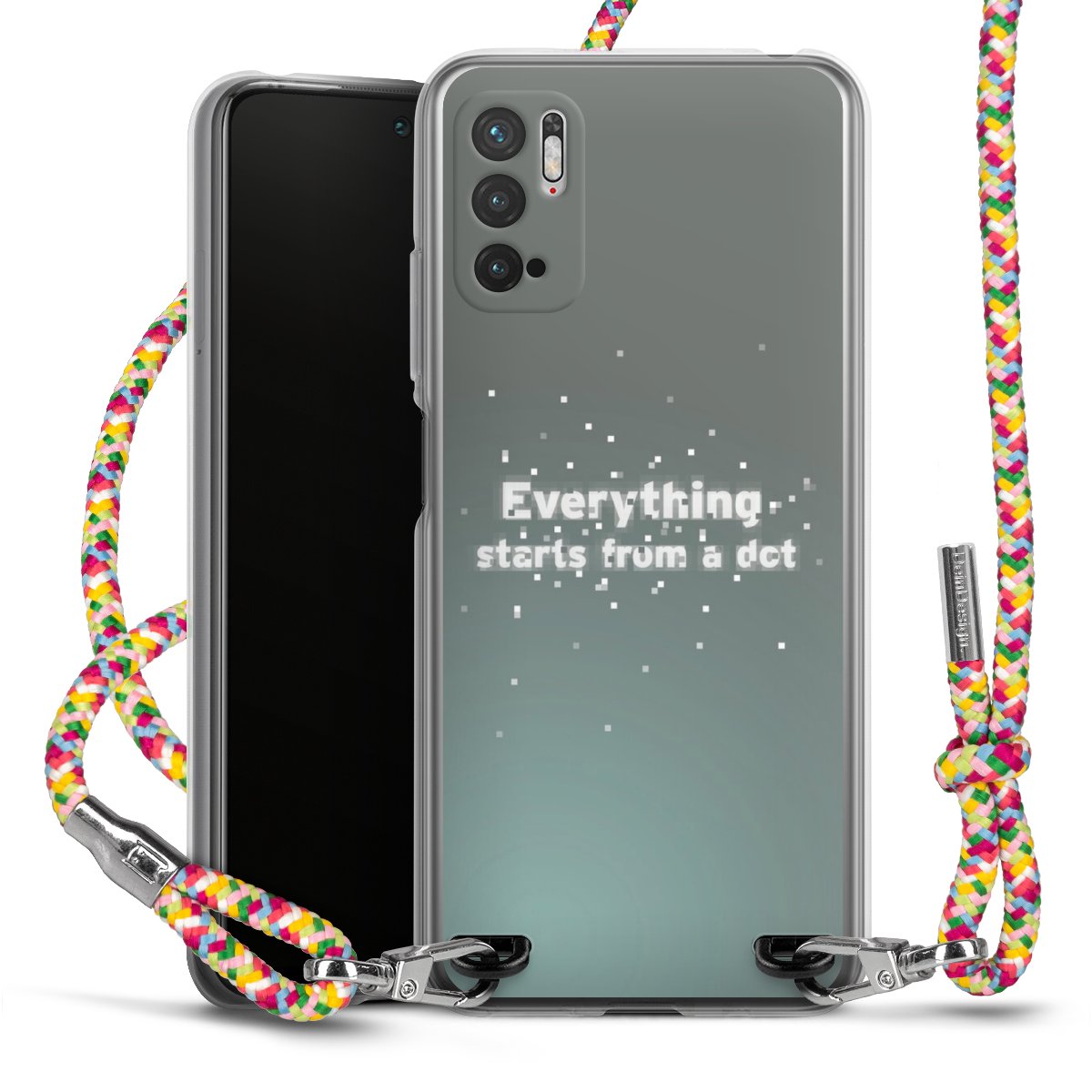 The flexible case is made from a highquality TPU material (thermoplastic Polyurethan). Thanks to its longlasting and break resistant characterisitcs, the case is flexible yet consistent in form and has a great grip and feel. The textile strap made from Polyester gives a chic yet casual accent allowing you to carry your phone like a bag or necklace - a practical gadget perfect for your next adventure. The textile strap is about 1.70 meters long and the length can easily be adjusted through the knots. Our Carry Case is available in Colourful, Mint-Camouflage, Very-Berry, Sahara-Sand and Sparkling-Neon. The ends of the textile strap are covered with metallic end caps to protect them against fraying.