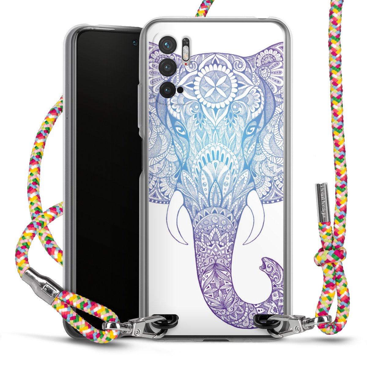 The flexible case is made from a highquality TPU material (thermoplastic Polyurethan). Thanks to its longlasting and break resistant characterisitcs, the case is flexible yet consistent in form and has a great grip and feel. The textile strap made from Polyester gives a chic yet casual accent allowing you to carry your phone like a bag or necklace - a practical gadget perfect for your next adventure. The textile strap is about 1.70 meters long and the length can easily be adjusted through the knots. Our Carry Case is available in Colourful, Mint-Camouflage, Very-Berry, Sahara-Sand and Sparkling-Neon. The ends of the textile strap are covered with metallic end caps to protect them against fraying.