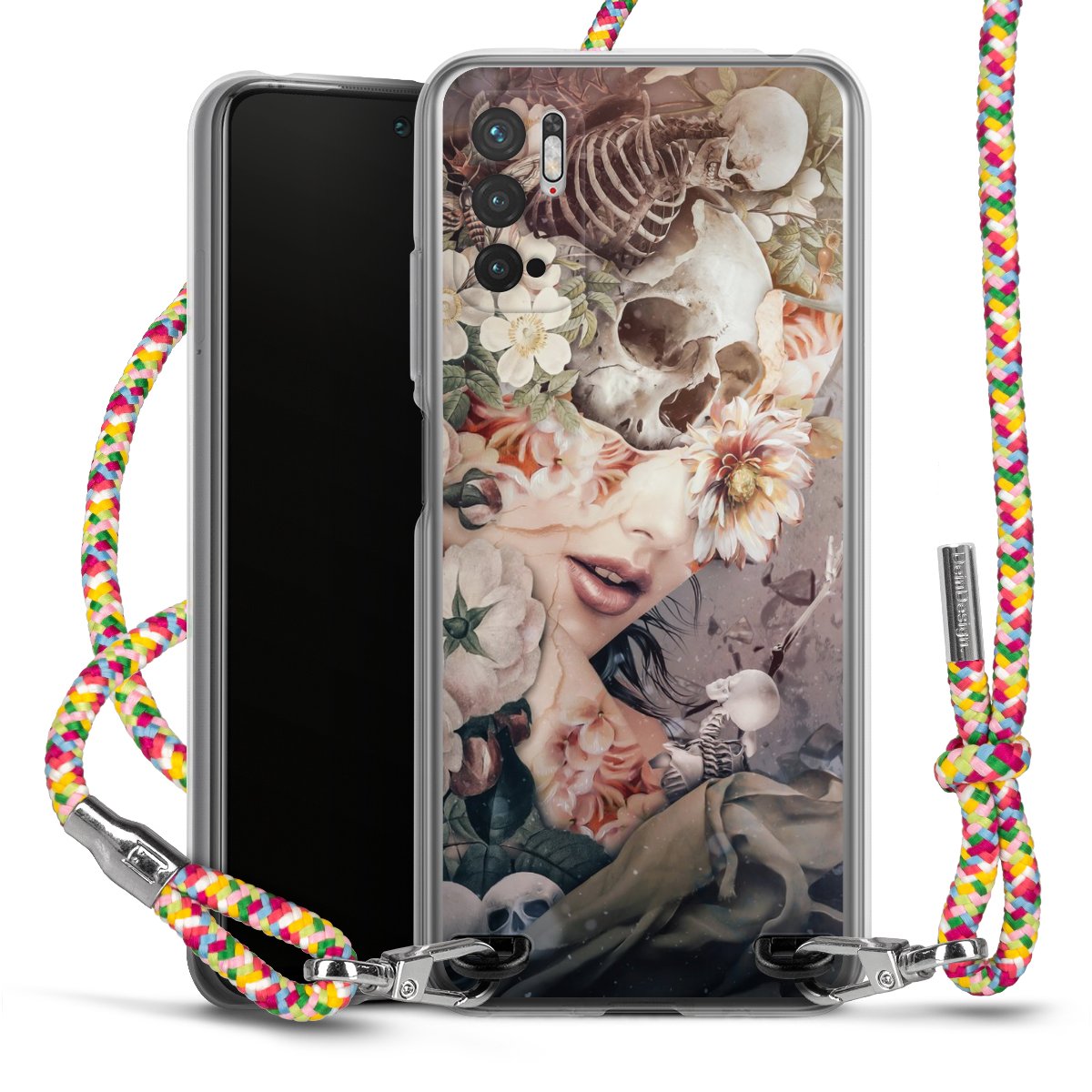 The flexible case is made from a highquality TPU material (thermoplastic Polyurethan). Thanks to its longlasting and break resistant characterisitcs, the case is flexible yet consistent in form and has a great grip and feel. The textile strap made from Polyester gives a chic yet casual accent allowing you to carry your phone like a bag or necklace - a practical gadget perfect for your next adventure. The textile strap is about 1.70 meters long and the length can easily be adjusted through the knots. Our Carry Case is available in Colourful, Mint-Camouflage, Very-Berry, Sahara-Sand and Sparkling-Neon. The ends of the textile strap are covered with metallic end caps to protect them against fraying.