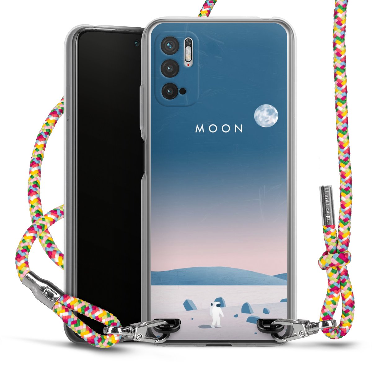 The flexible case is made from a highquality TPU material (thermoplastic Polyurethan). Thanks to its longlasting and break resistant characterisitcs, the case is flexible yet consistent in form and has a great grip and feel. The textile strap made from Polyester gives a chic yet casual accent allowing you to carry your phone like a bag or necklace - a practical gadget perfect for your next adventure. The textile strap is about 1.70 meters long and the length can easily be adjusted through the knots. Our Carry Case is available in Colourful, Mint-Camouflage, Very-Berry, Sahara-Sand and Sparkling-Neon. The ends of the textile strap are covered with metallic end caps to protect them against fraying.