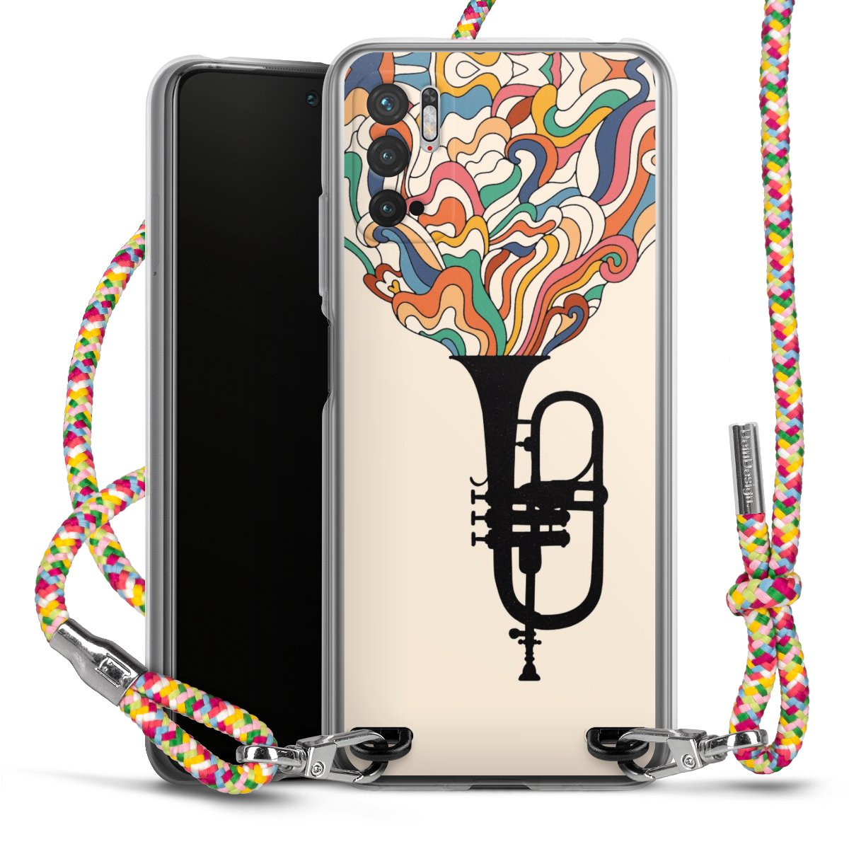 The flexible case is made from a highquality TPU material (thermoplastic Polyurethan). Thanks to its longlasting and break resistant characterisitcs, the case is flexible yet consistent in form and has a great grip and feel. The textile strap made from Polyester gives a chic yet casual accent allowing you to carry your phone like a bag or necklace - a practical gadget perfect for your next adventure. The textile strap is about 1.70 meters long and the length can easily be adjusted through the knots. Our Carry Case is available in Colourful, Mint-Camouflage, Very-Berry, Sahara-Sand and Sparkling-Neon. The ends of the textile strap are covered with metallic end caps to protect them against fraying.