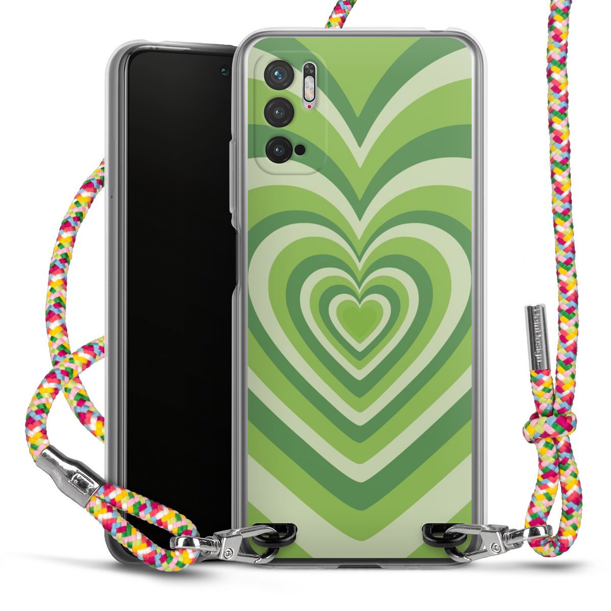 The flexible case is made from a highquality TPU material (thermoplastic Polyurethan). Thanks to its longlasting and break resistant characterisitcs, the case is flexible yet consistent in form and has a great grip and feel. The textile strap made from Polyester gives a chic yet casual accent allowing you to carry your phone like a bag or necklace - a practical gadget perfect for your next adventure. The textile strap is about 1.70 meters long and the length can easily be adjusted through the knots. Our Carry Case is available in Colourful, Mint-Camouflage, Very-Berry, Sahara-Sand and Sparkling-Neon. The ends of the textile strap are covered with metallic end caps to protect them against fraying.