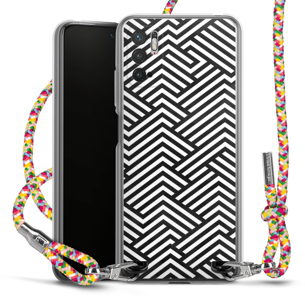 The flexible case is made from a highquality TPU material (thermoplastic Polyurethan). Thanks to its longlasting and break resistant characterisitcs, the case is flexible yet consistent in form and has a great grip and feel. The textile strap made from Polyester gives a chic yet casual accent allowing you to carry your phone like a bag or necklace - a practical gadget perfect for your next adventure. The textile strap is about 1.70 meters long and the length can easily be adjusted through the knots. Our Carry Case is available in Colourful, Mint-Camouflage, Very-Berry, Sahara-Sand and Sparkling-Neon. The ends of the textile strap are covered with metallic end caps to protect them against fraying.