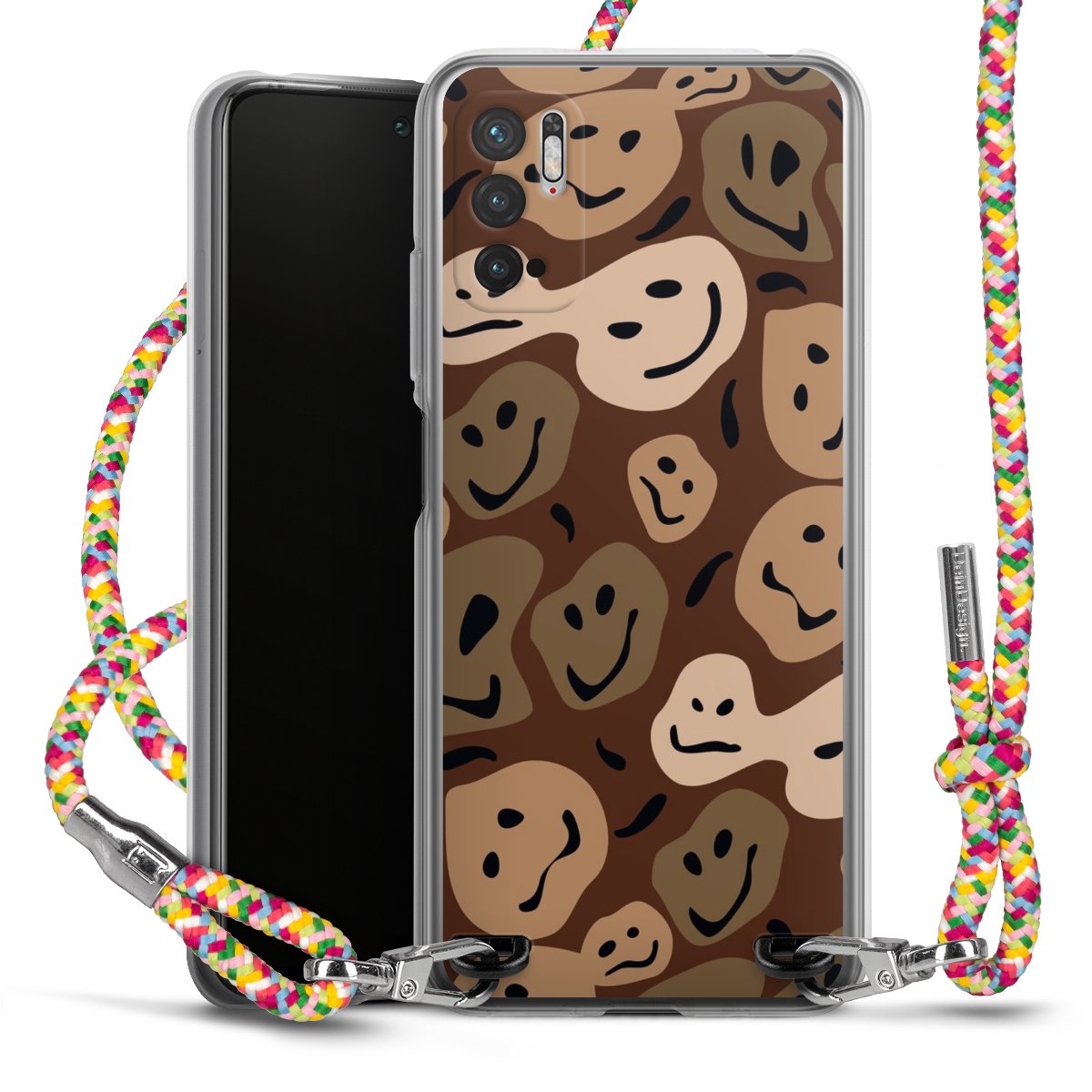 The flexible case is made from a highquality TPU material (thermoplastic Polyurethan). Thanks to its longlasting and break resistant characterisitcs, the case is flexible yet consistent in form and has a great grip and feel. The textile strap made from Polyester gives a chic yet casual accent allowing you to carry your phone like a bag or necklace - a practical gadget perfect for your next adventure. The textile strap is about 1.70 meters long and the length can easily be adjusted through the knots. Our Carry Case is available in Colourful, Mint-Camouflage, Very-Berry, Sahara-Sand and Sparkling-Neon. The ends of the textile strap are covered with metallic end caps to protect them against fraying.