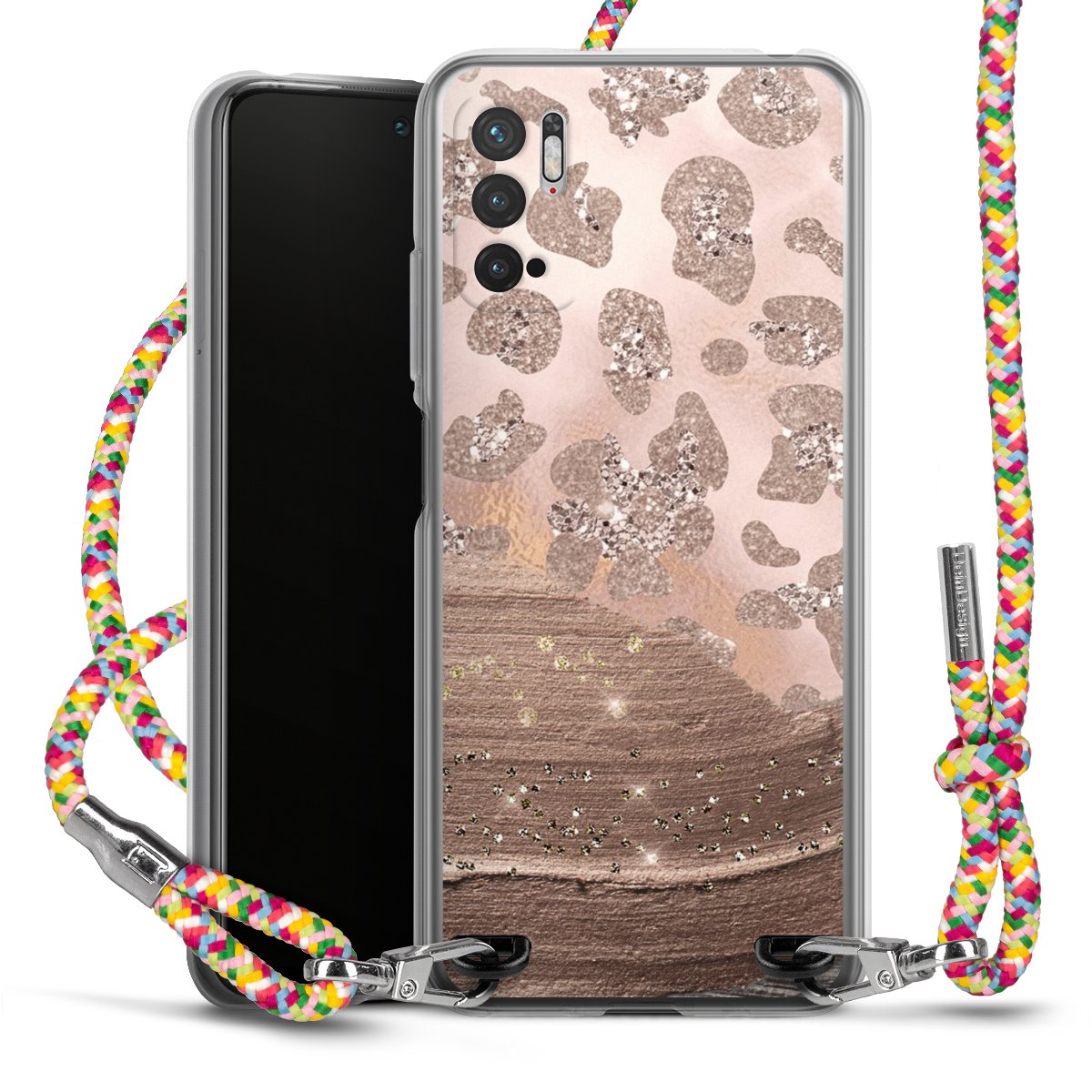 The flexible case is made from a highquality TPU material (thermoplastic Polyurethan). Thanks to its longlasting and break resistant characterisitcs, the case is flexible yet consistent in form and has a great grip and feel. The textile strap made from Polyester gives a chic yet casual accent allowing you to carry your phone like a bag or necklace - a practical gadget perfect for your next adventure. The textile strap is about 1.70 meters long and the length can easily be adjusted through the knots. Our Carry Case is available in Colourful, Mint-Camouflage, Very-Berry, Sahara-Sand and Sparkling-Neon. The ends of the textile strap are covered with metallic end caps to protect them against fraying.