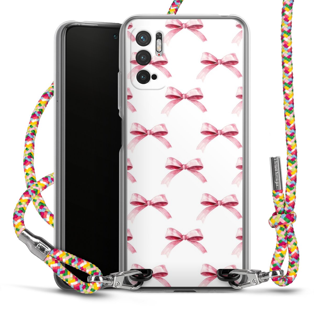 The flexible case is made from a highquality TPU material (thermoplastic Polyurethan). Thanks to its longlasting and break resistant characterisitcs, the case is flexible yet consistent in form and has a great grip and feel. The textile strap made from Polyester gives a chic yet casual accent allowing you to carry your phone like a bag or necklace - a practical gadget perfect for your next adventure. The textile strap is about 1.70 meters long and the length can easily be adjusted through the knots. Our Carry Case is available in Colourful, Mint-Camouflage, Very-Berry, Sahara-Sand and Sparkling-Neon. The ends of the textile strap are covered with metallic end caps to protect them against fraying.