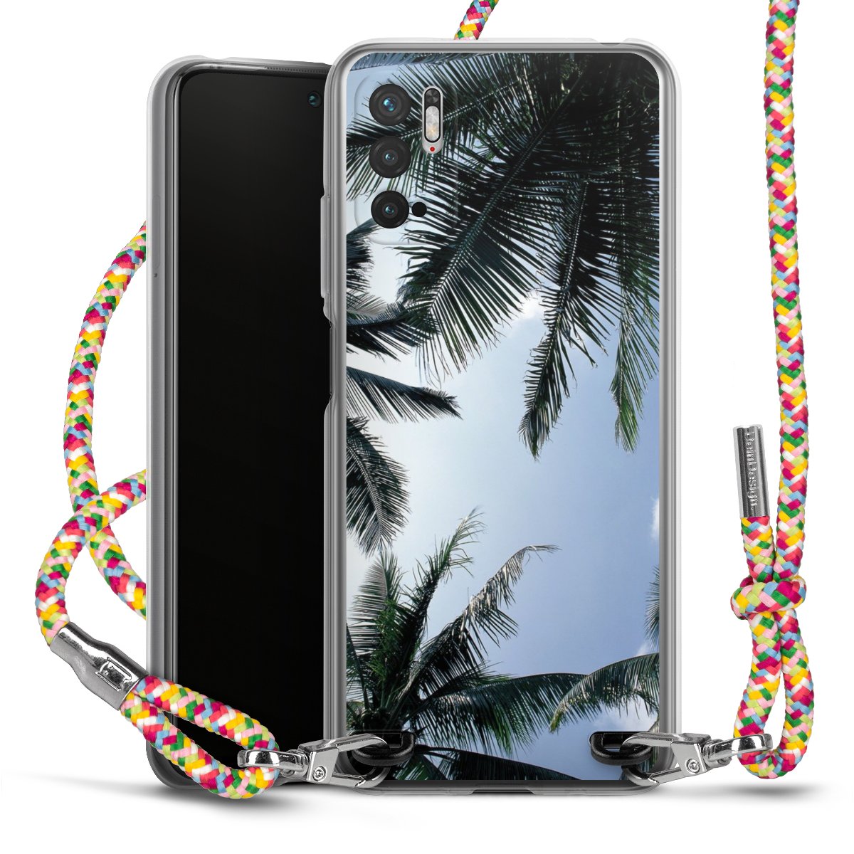 The flexible case is made from a highquality TPU material (thermoplastic Polyurethan). Thanks to its longlasting and break resistant characterisitcs, the case is flexible yet consistent in form and has a great grip and feel. The textile strap made from Polyester gives a chic yet casual accent allowing you to carry your phone like a bag or necklace - a practical gadget perfect for your next adventure. The textile strap is about 1.70 meters long and the length can easily be adjusted through the knots. Our Carry Case is available in Colourful, Mint-Camouflage, Very-Berry, Sahara-Sand and Sparkling-Neon. The ends of the textile strap are covered with metallic end caps to protect them against fraying.