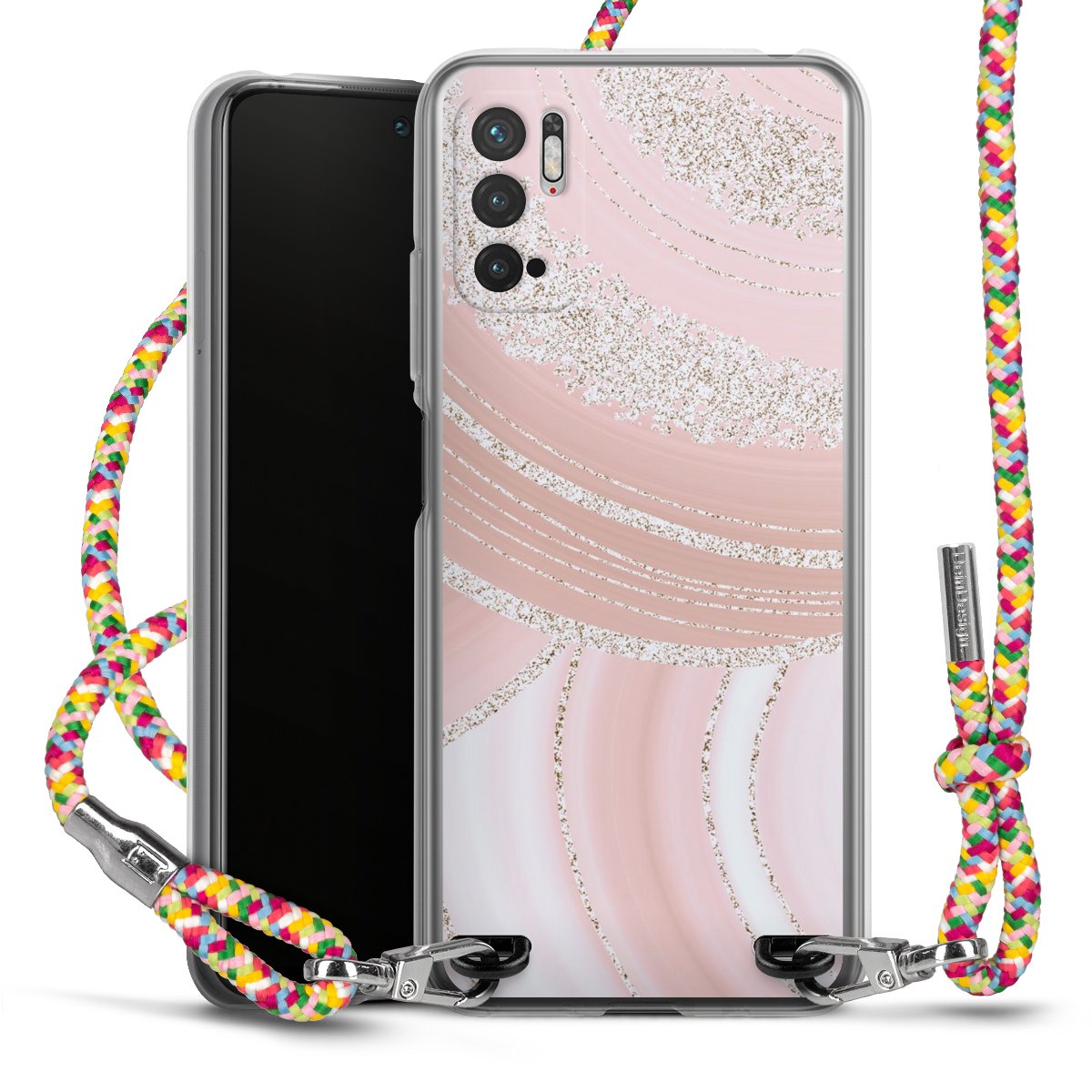 The flexible case is made from a highquality TPU material (thermoplastic Polyurethan). Thanks to its longlasting and break resistant characterisitcs, the case is flexible yet consistent in form and has a great grip and feel. The textile strap made from Polyester gives a chic yet casual accent allowing you to carry your phone like a bag or necklace - a practical gadget perfect for your next adventure. The textile strap is about 1.70 meters long and the length can easily be adjusted through the knots. Our Carry Case is available in Colourful, Mint-Camouflage, Very-Berry, Sahara-Sand and Sparkling-Neon. The ends of the textile strap are covered with metallic end caps to protect them against fraying.