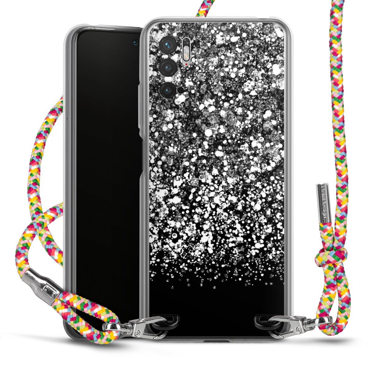 The flexible case is made from a highquality TPU material (thermoplastic Polyurethan). Thanks to its longlasting and break resistant characterisitcs, the case is flexible yet consistent in form and has a great grip and feel. The textile strap made from Polyester gives a chic yet casual accent allowing you to carry your phone like a bag or necklace - a practical gadget perfect for your next adventure. The textile strap is about 1.70 meters long and the length can easily be adjusted through the knots. Our Carry Case is available in Colourful, Mint-Camouflage, Very-Berry, Sahara-Sand and Sparkling-Neon. The ends of the textile strap are covered with metallic end caps to protect them against fraying.
