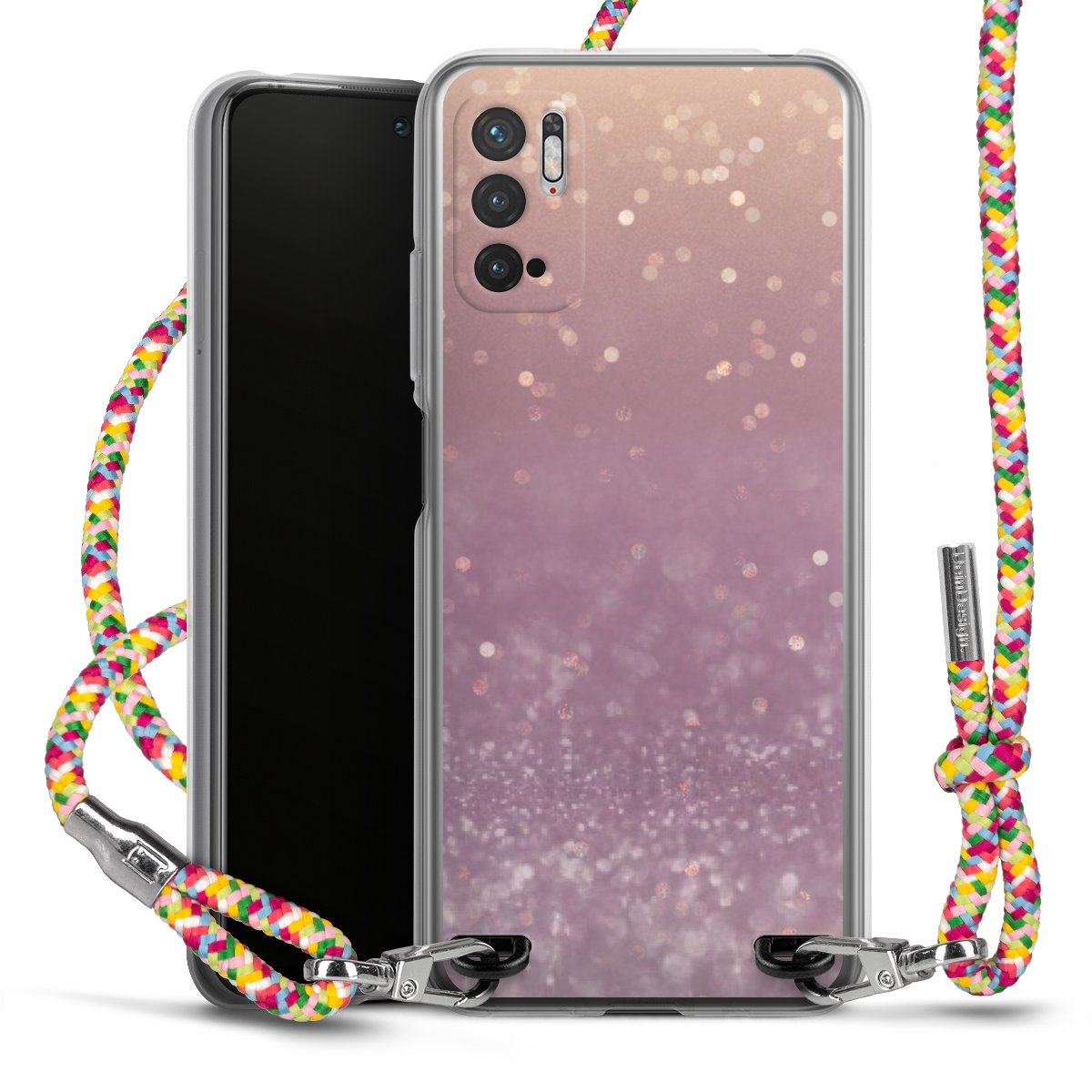 The flexible case is made from a highquality TPU material (thermoplastic Polyurethan). Thanks to its longlasting and break resistant characterisitcs, the case is flexible yet consistent in form and has a great grip and feel. The textile strap made from Polyester gives a chic yet casual accent allowing you to carry your phone like a bag or necklace - a practical gadget perfect for your next adventure. The textile strap is about 1.70 meters long and the length can easily be adjusted through the knots. Our Carry Case is available in Colourful, Mint-Camouflage, Very-Berry, Sahara-Sand and Sparkling-Neon. The ends of the textile strap are covered with metallic end caps to protect them against fraying.