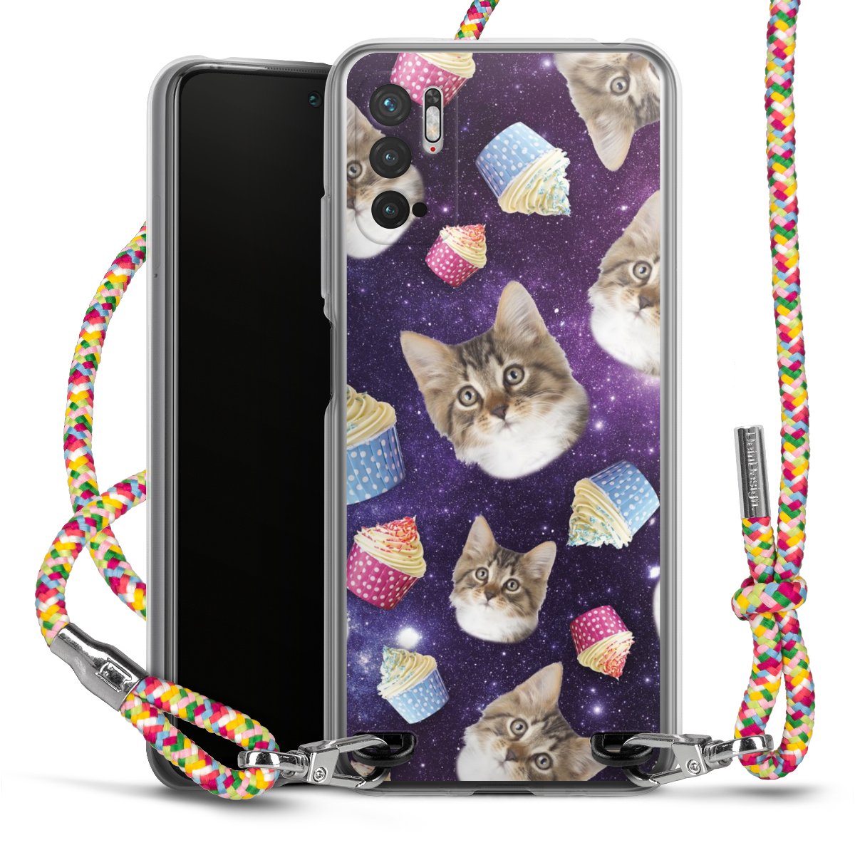 The flexible case is made from a highquality TPU material (thermoplastic Polyurethan). Thanks to its longlasting and break resistant characterisitcs, the case is flexible yet consistent in form and has a great grip and feel. The textile strap made from Polyester gives a chic yet casual accent allowing you to carry your phone like a bag or necklace - a practical gadget perfect for your next adventure. The textile strap is about 1.70 meters long and the length can easily be adjusted through the knots. Our Carry Case is available in Colourful, Mint-Camouflage, Very-Berry, Sahara-Sand and Sparkling-Neon. The ends of the textile strap are covered with metallic end caps to protect them against fraying.