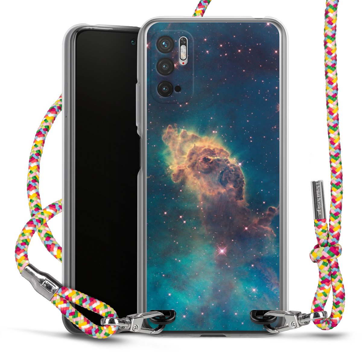 The flexible case is made from a highquality TPU material (thermoplastic Polyurethan). Thanks to its longlasting and break resistant characterisitcs, the case is flexible yet consistent in form and has a great grip and feel. The textile strap made from Polyester gives a chic yet casual accent allowing you to carry your phone like a bag or necklace - a practical gadget perfect for your next adventure. The textile strap is about 1.70 meters long and the length can easily be adjusted through the knots. Our Carry Case is available in Colourful, Mint-Camouflage, Very-Berry, Sahara-Sand and Sparkling-Neon. The ends of the textile strap are covered with metallic end caps to protect them against fraying.