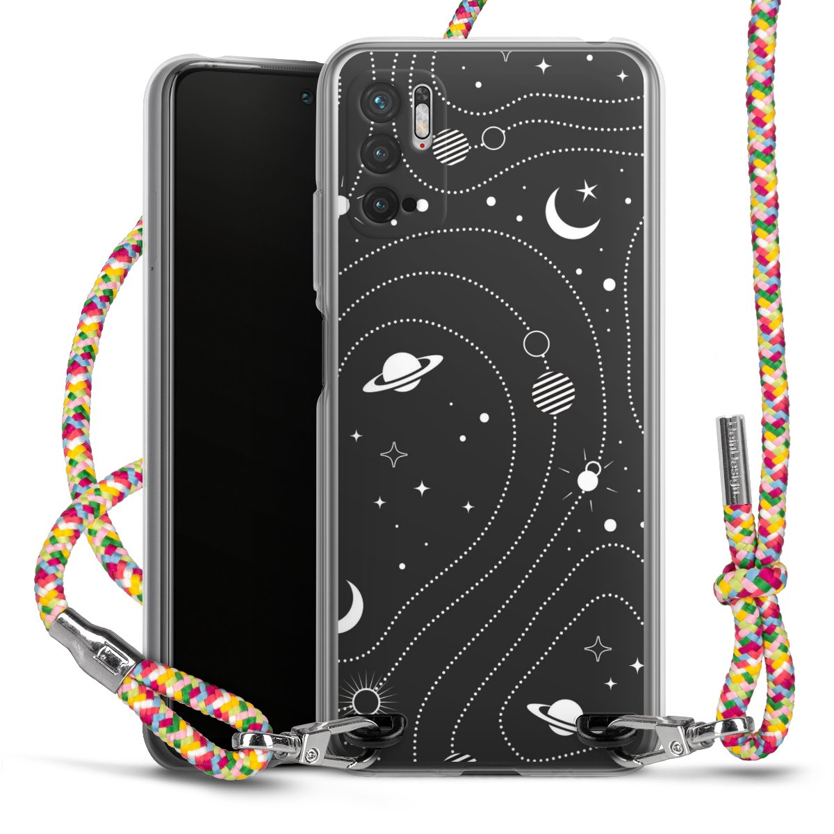 The flexible case is made from a highquality TPU material (thermoplastic Polyurethan). Thanks to its longlasting and break resistant characterisitcs, the case is flexible yet consistent in form and has a great grip and feel. The textile strap made from Polyester gives a chic yet casual accent allowing you to carry your phone like a bag or necklace - a practical gadget perfect for your next adventure. The textile strap is about 1.70 meters long and the length can easily be adjusted through the knots. Our Carry Case is available in Colourful, Mint-Camouflage, Very-Berry, Sahara-Sand and Sparkling-Neon. The ends of the textile strap are covered with metallic end caps to protect them against fraying.