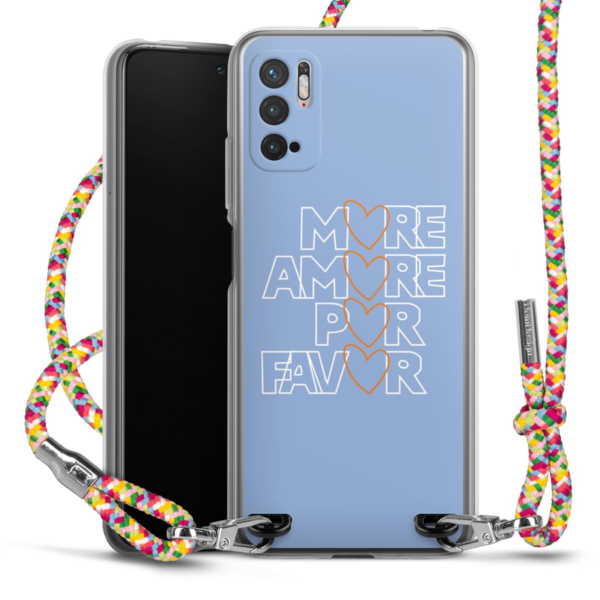 The flexible case is made from a highquality TPU material (thermoplastic Polyurethan). Thanks to its longlasting and break resistant characterisitcs, the case is flexible yet consistent in form and has a great grip and feel. The textile strap made from Polyester gives a chic yet casual accent allowing you to carry your phone like a bag or necklace - a practical gadget perfect for your next adventure. The textile strap is about 1.70 meters long and the length can easily be adjusted through the knots. Our Carry Case is available in Colourful, Mint-Camouflage, Very-Berry, Sahara-Sand and Sparkling-Neon. The ends of the textile strap are covered with metallic end caps to protect them against fraying.