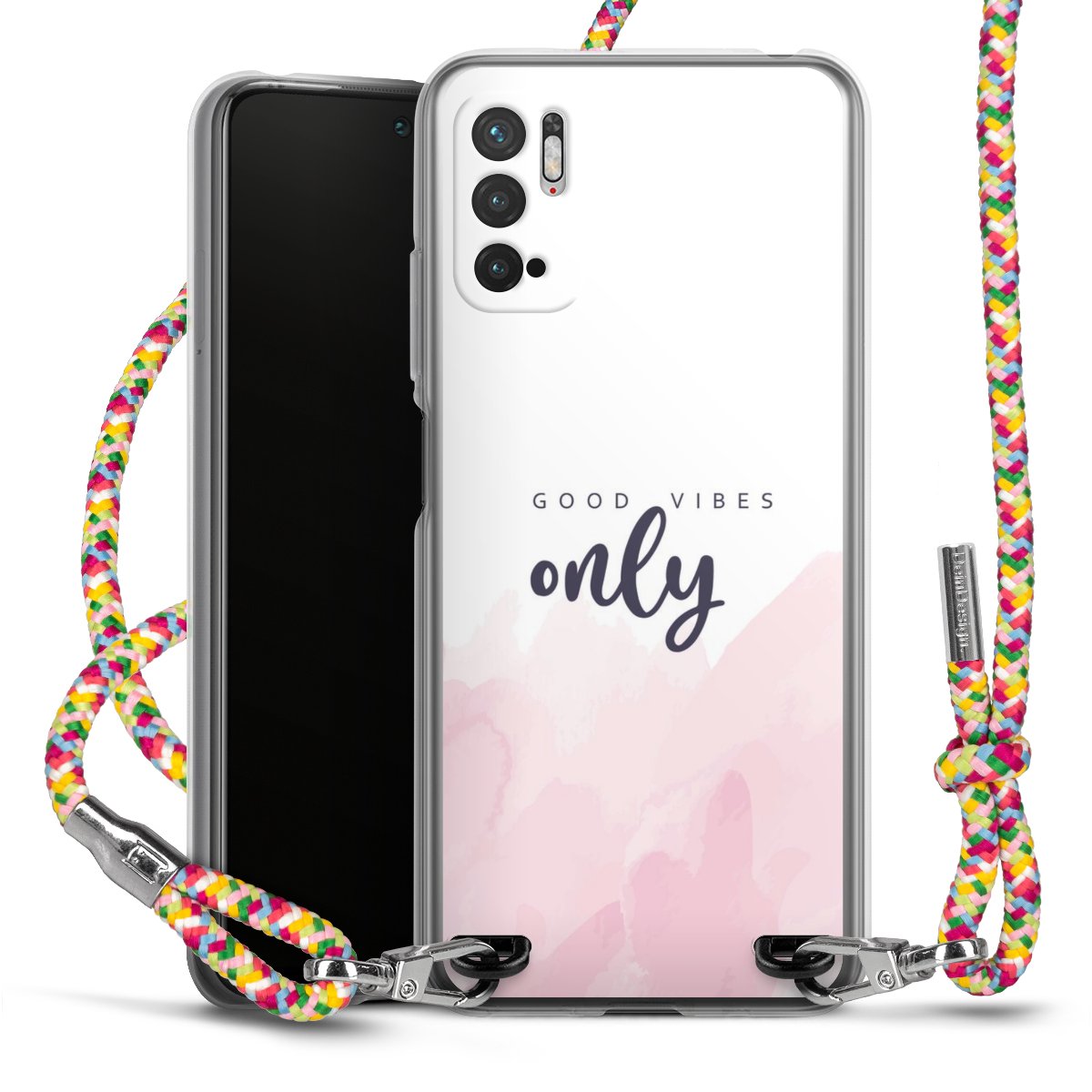 The flexible case is made from a highquality TPU material (thermoplastic Polyurethan). Thanks to its longlasting and break resistant characterisitcs, the case is flexible yet consistent in form and has a great grip and feel. The textile strap made from Polyester gives a chic yet casual accent allowing you to carry your phone like a bag or necklace - a practical gadget perfect for your next adventure. The textile strap is about 1.70 meters long and the length can easily be adjusted through the knots. Our Carry Case is available in Colourful, Mint-Camouflage, Very-Berry, Sahara-Sand and Sparkling-Neon. The ends of the textile strap are covered with metallic end caps to protect them against fraying.