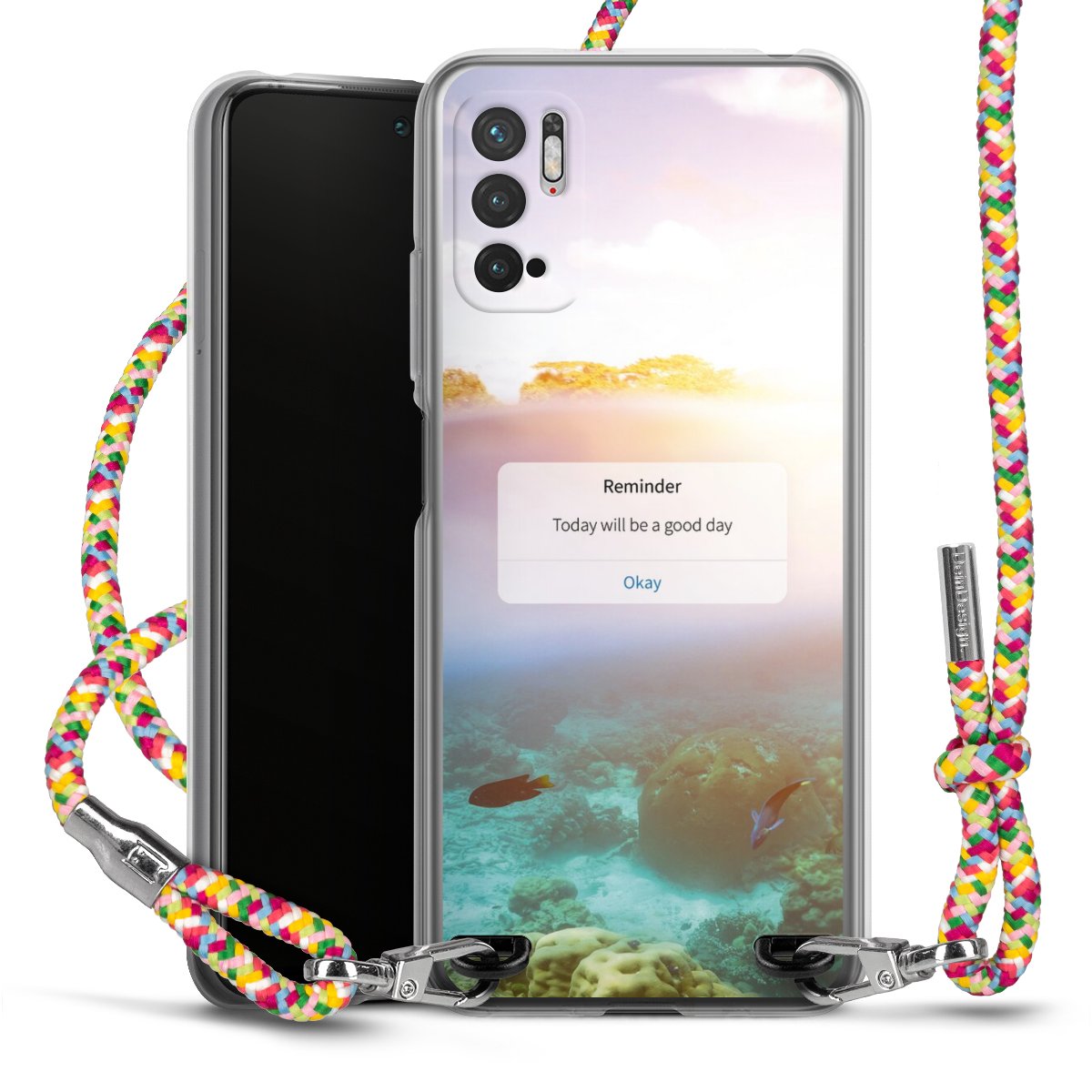 The flexible case is made from a highquality TPU material (thermoplastic Polyurethan). Thanks to its longlasting and break resistant characterisitcs, the case is flexible yet consistent in form and has a great grip and feel. The textile strap made from Polyester gives a chic yet casual accent allowing you to carry your phone like a bag or necklace - a practical gadget perfect for your next adventure. The textile strap is about 1.70 meters long and the length can easily be adjusted through the knots. Our Carry Case is available in Colourful, Mint-Camouflage, Very-Berry, Sahara-Sand and Sparkling-Neon. The ends of the textile strap are covered with metallic end caps to protect them against fraying.