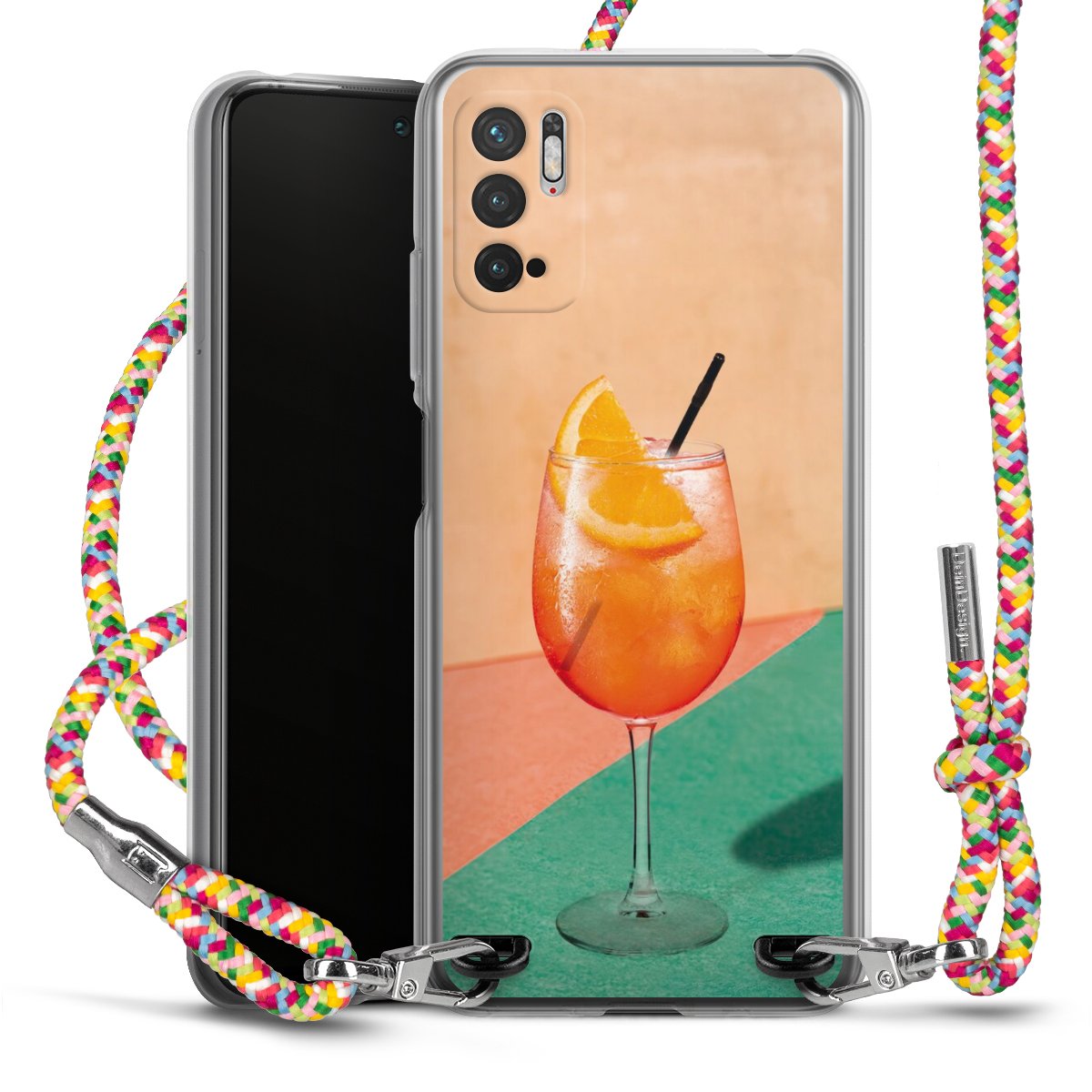 The flexible case is made from a highquality TPU material (thermoplastic Polyurethan). Thanks to its longlasting and break resistant characterisitcs, the case is flexible yet consistent in form and has a great grip and feel. The textile strap made from Polyester gives a chic yet casual accent allowing you to carry your phone like a bag or necklace - a practical gadget perfect for your next adventure. The textile strap is about 1.70 meters long and the length can easily be adjusted through the knots. Our Carry Case is available in Colourful, Mint-Camouflage, Very-Berry, Sahara-Sand and Sparkling-Neon. The ends of the textile strap are covered with metallic end caps to protect them against fraying.