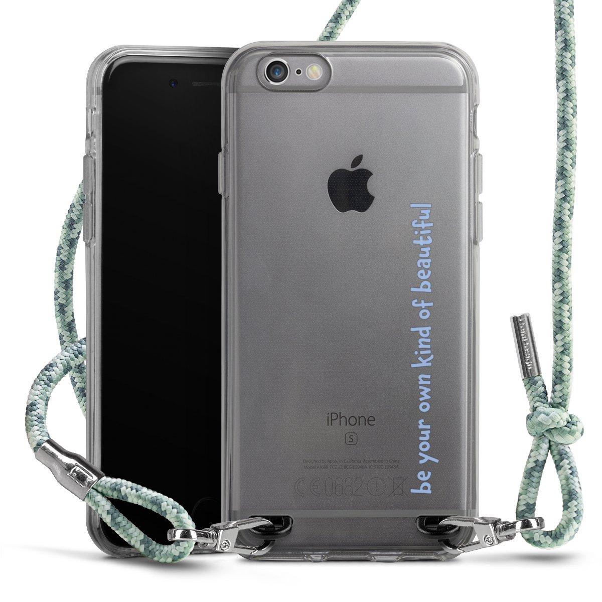 The flexible case is made from a highquality TPU material (thermoplastic Polyurethan). Thanks to its longlasting and break resistant characterisitcs, the case is flexible yet consistent in form and has a great grip and feel. The textile strap made from Polyester gives a chic yet casual accent allowing you to carry your phone like a bag or necklace - a practical gadget perfect for your next adventure. The textile strap is about 1.70 meters long and the length can easily be adjusted through the knots. Our Carry Case is available in Colourful, Mint-Camouflage, Very-Berry, Sahara-Sand and Sparkling-Neon. The ends of the textile strap are covered with metallic end caps to protect them against fraying.