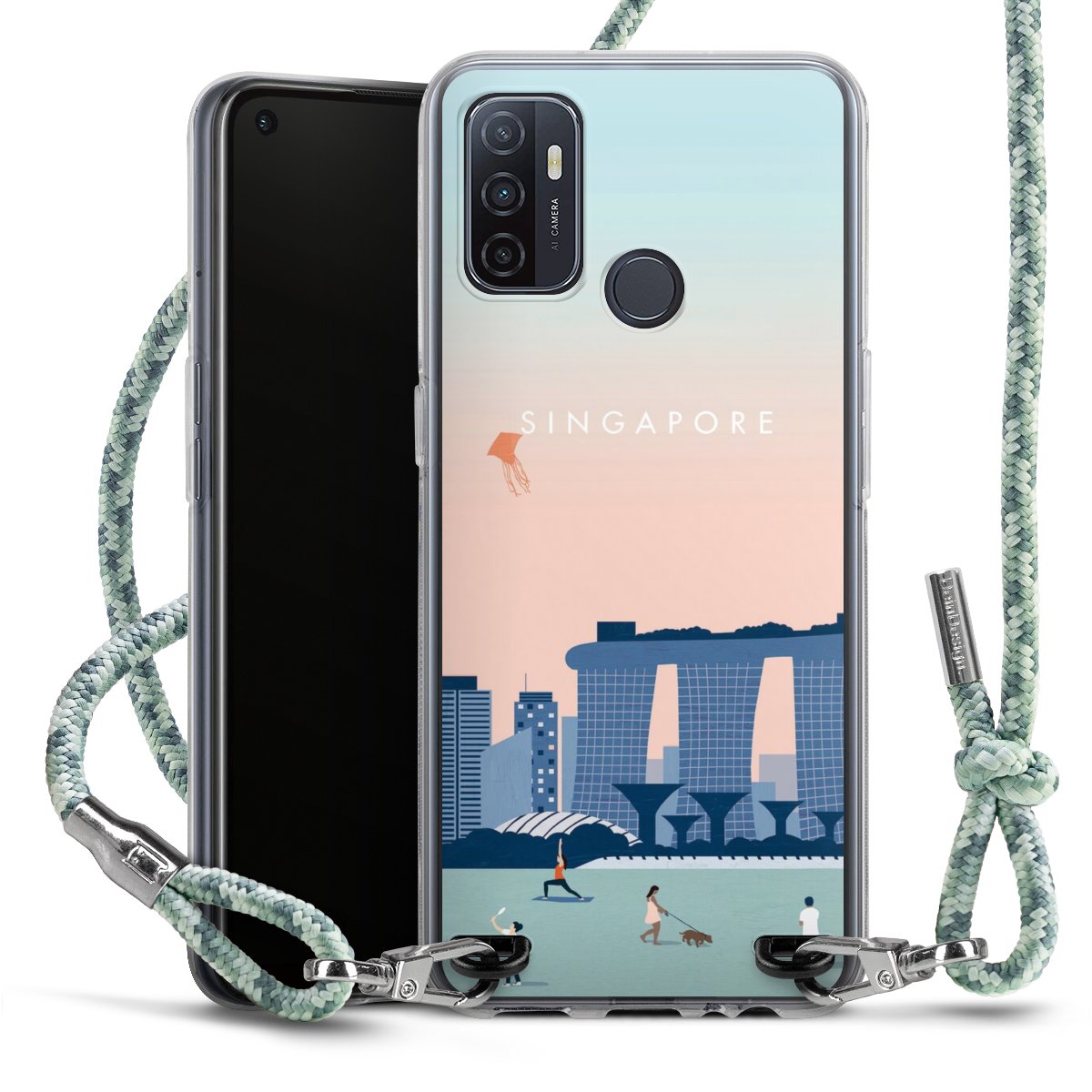 The flexible case is made from a highquality TPU material (thermoplastic Polyurethan). Thanks to its longlasting and break resistant characterisitcs, the case is flexible yet consistent in form and has a great grip and feel. The textile strap made from Polyester gives a chic yet casual accent allowing you to carry your phone like a bag or necklace - a practical gadget perfect for your next adventure. The textile strap is about 1.70 meters long and the length can easily be adjusted through the knots. Our Carry Case is available in Colourful, Mint-Camouflage, Very-Berry, Sahara-Sand and Sparkling-Neon. The ends of the textile strap are covered with metallic end caps to protect them against fraying.