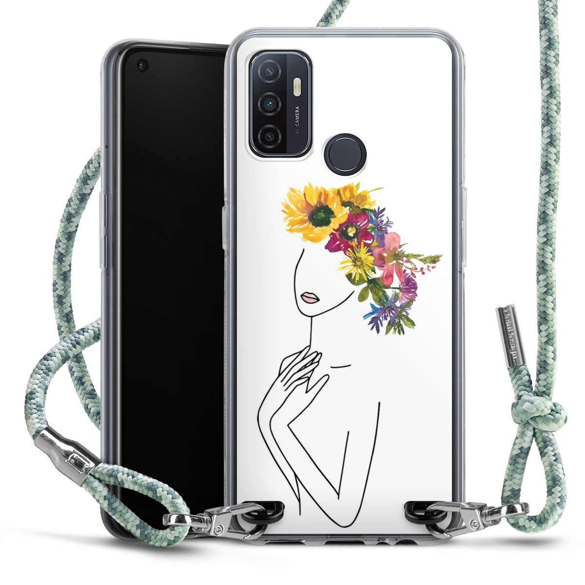 The flexible case is made from a highquality TPU material (thermoplastic Polyurethan). Thanks to its longlasting and break resistant characterisitcs, the case is flexible yet consistent in form and has a great grip and feel. The textile strap made from Polyester gives a chic yet casual accent allowing you to carry your phone like a bag or necklace - a practical gadget perfect for your next adventure. The textile strap is about 1.70 meters long and the length can easily be adjusted through the knots. Our Carry Case is available in Colourful, Mint-Camouflage, Very-Berry, Sahara-Sand and Sparkling-Neon. The ends of the textile strap are covered with metallic end caps to protect them against fraying.