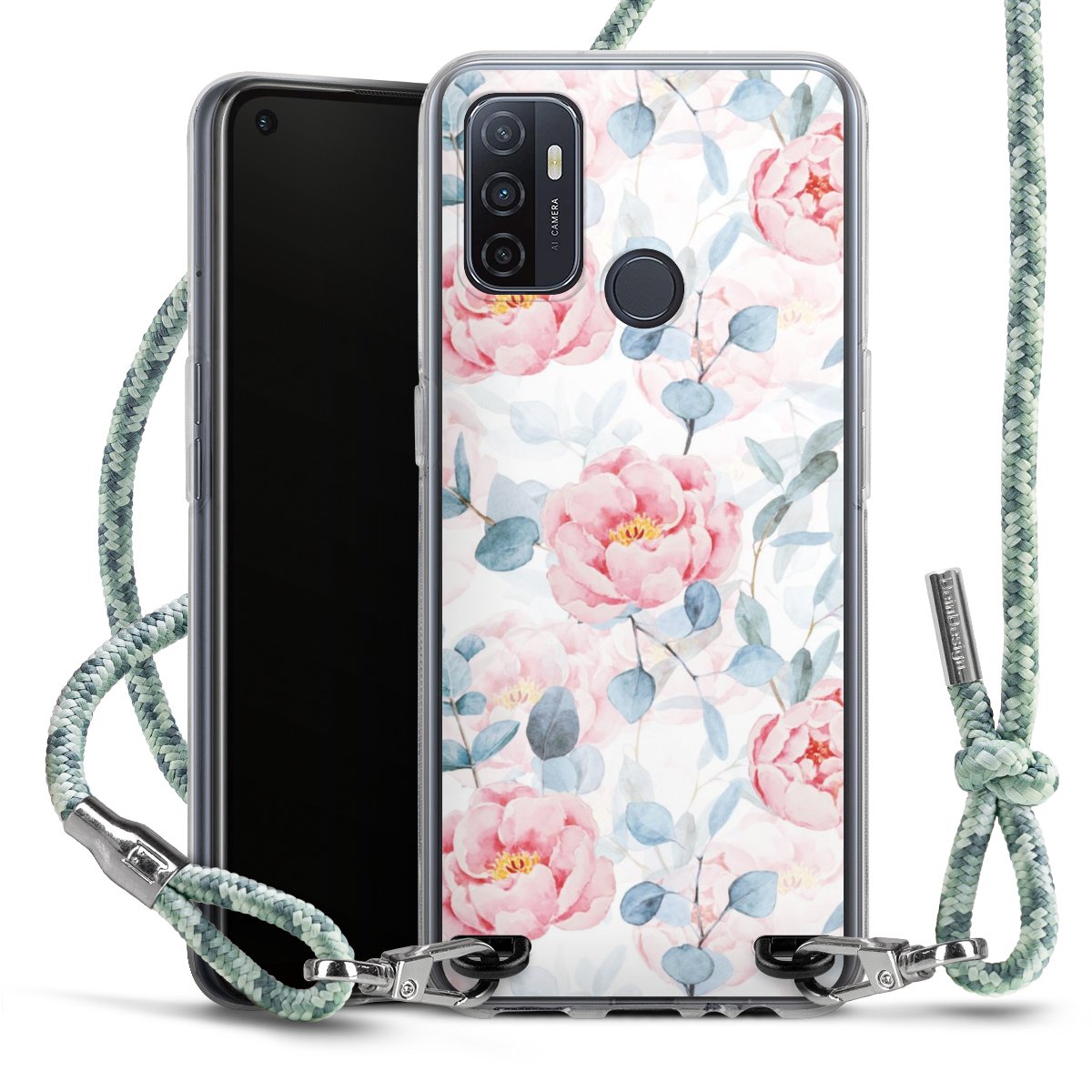 The flexible case is made from a highquality TPU material (thermoplastic Polyurethan). Thanks to its longlasting and break resistant characterisitcs, the case is flexible yet consistent in form and has a great grip and feel. The textile strap made from Polyester gives a chic yet casual accent allowing you to carry your phone like a bag or necklace - a practical gadget perfect for your next adventure. The textile strap is about 1.70 meters long and the length can easily be adjusted through the knots. Our Carry Case is available in Colourful, Mint-Camouflage, Very-Berry, Sahara-Sand and Sparkling-Neon. The ends of the textile strap are covered with metallic end caps to protect them against fraying.