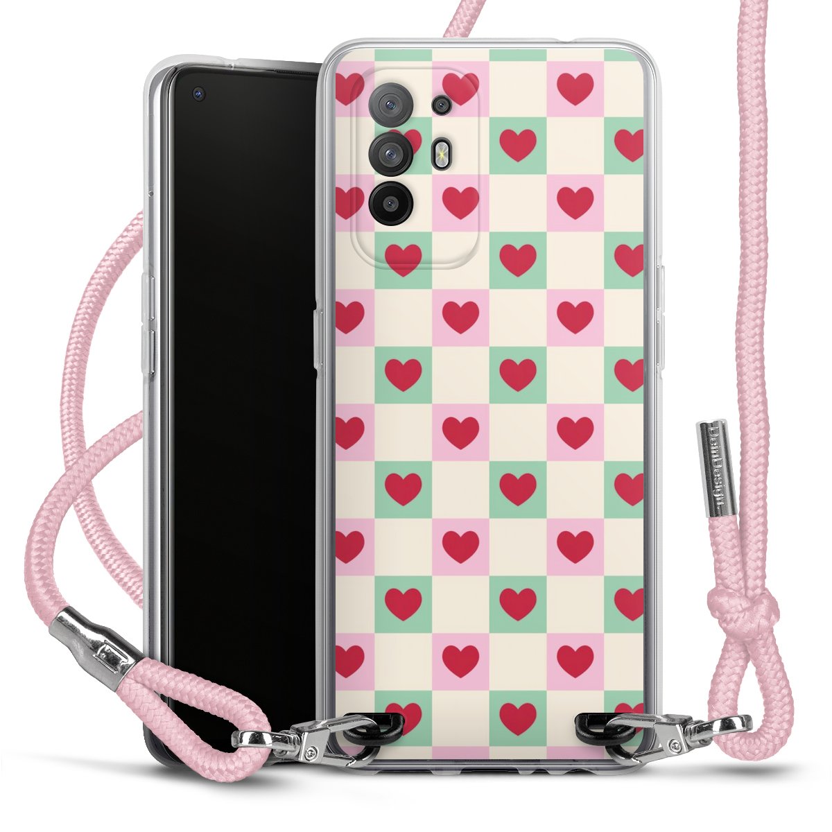 Valentine Checked Hearts Pattern Pink Green