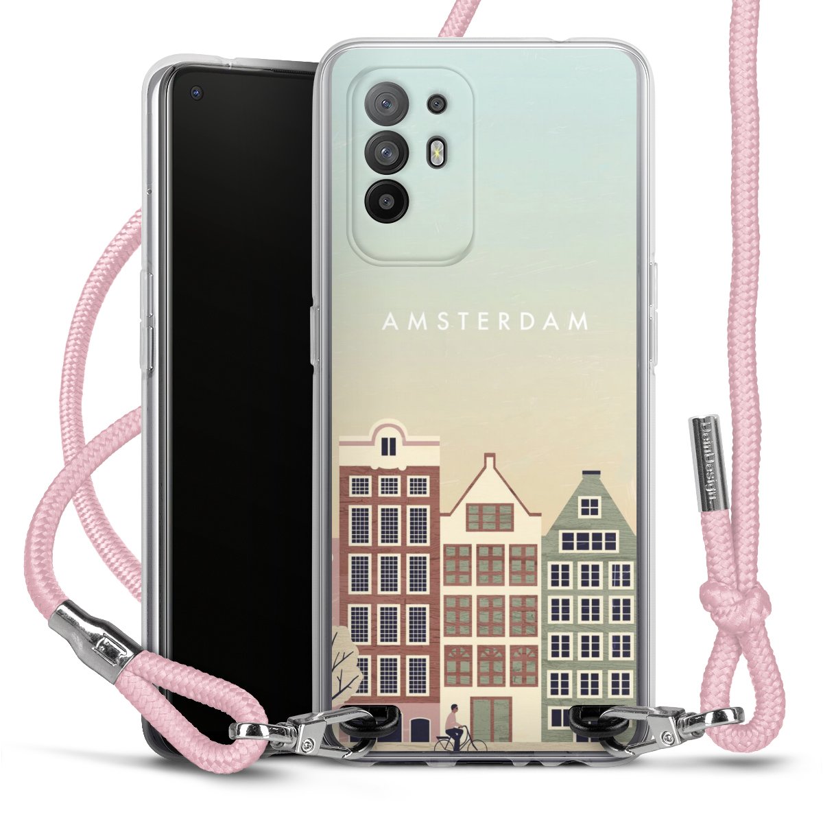 Keep your phone handy at all times, thanks to the flexible silicone case with a textile strap.