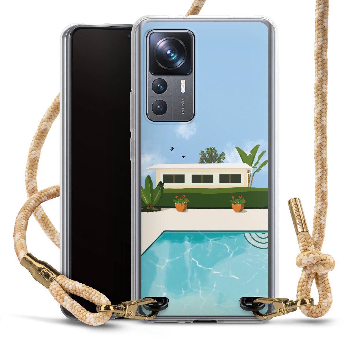 The flexible case is made from a highquality TPU material (thermoplastic Polyurethan). Thanks to its longlasting and break resistant characterisitcs, the case is flexible yet consistent in form and has a great grip and feel. The textile strap made from Polyester gives a chic yet casual accent allowing you to carry your phone like a bag or necklace - a practical gadget perfect for your next adventure. The textile strap is about 1.70 meters long and the length can easily be adjusted through the knots. Our Carry Case is available in Colourful, Mint-Camouflage, Very-Berry, Sahara-Sand and Sparkling-Neon. The ends of the textile strap are covered with metallic end caps to protect them against fraying.
