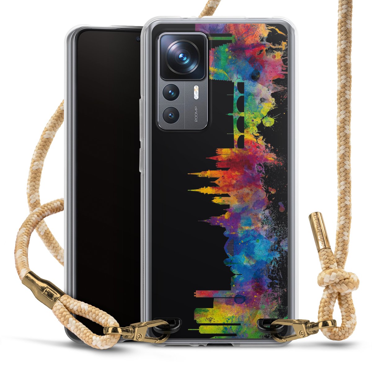 The flexible case is made from a highquality TPU material (thermoplastic Polyurethan). Thanks to its longlasting and break resistant characterisitcs, the case is flexible yet consistent in form and has a great grip and feel. The textile strap made from Polyester gives a chic yet casual accent allowing you to carry your phone like a bag or necklace - a practical gadget perfect for your next adventure. The textile strap is about 1.70 meters long and the length can easily be adjusted through the knots. Our Carry Case is available in Colourful, Mint-Camouflage, Very-Berry, Sahara-Sand and Sparkling-Neon. The ends of the textile strap are covered with metallic end caps to protect them against fraying.